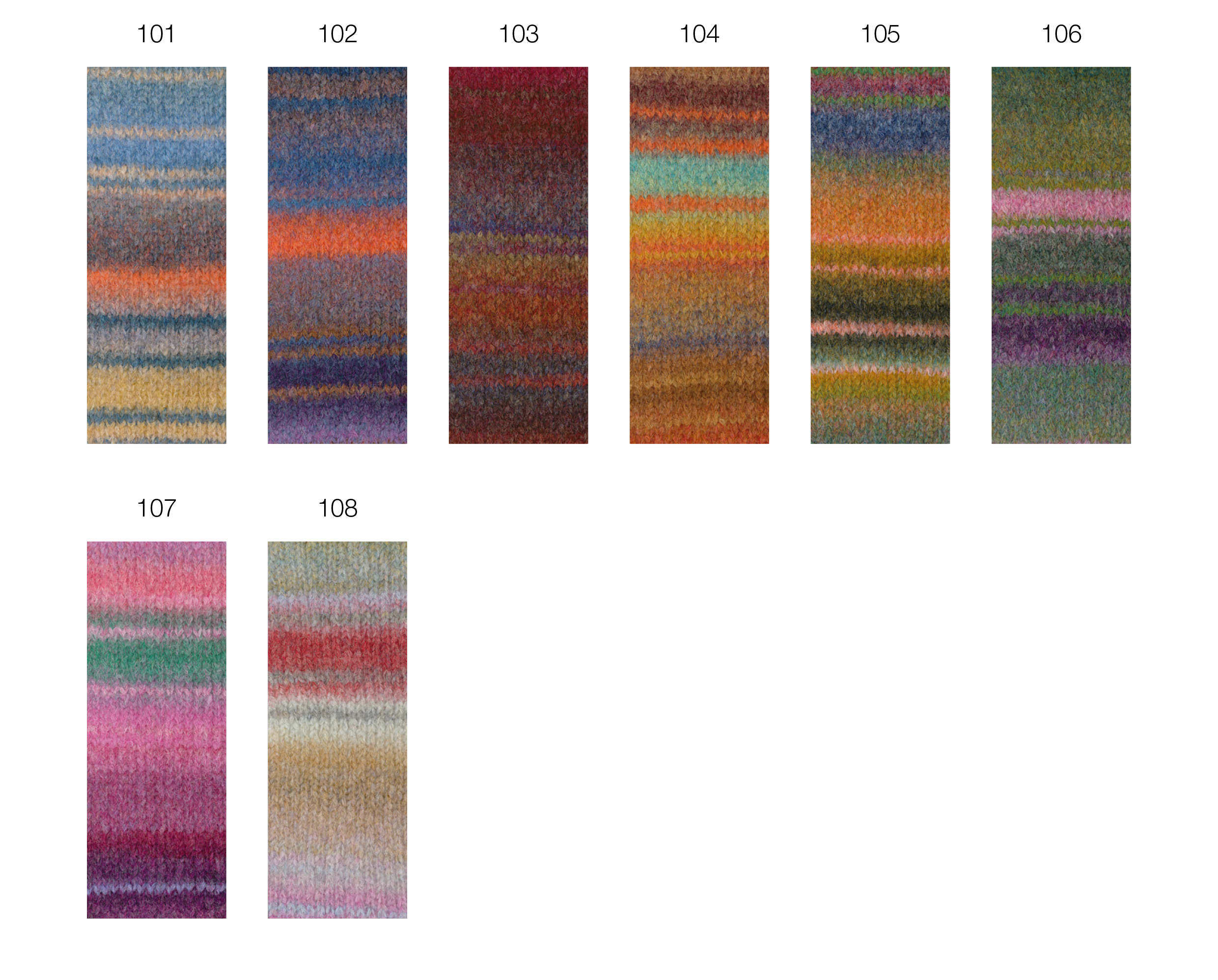 Voluminöses Alpakagarn mit Effektstruktur im farbenfrohen Ringelmix.