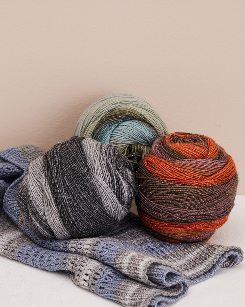 Dochtgarn im Farbverlauf mit dezentem Lurex-Effekt