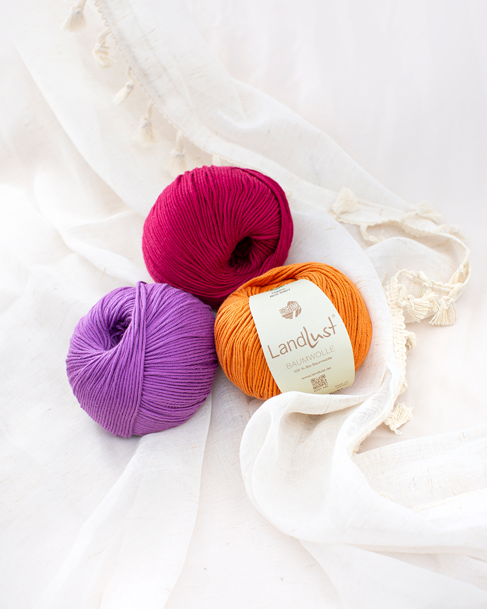 Landlust Baumwolle ist ein natürliches, weiches Garn aus 100 % Bio-Baumwolle, das in Zusammenarbeit mit dem Landlust Magazin entwickelt wurde. Es hat ein angenehm, griffiges Maschenbild.