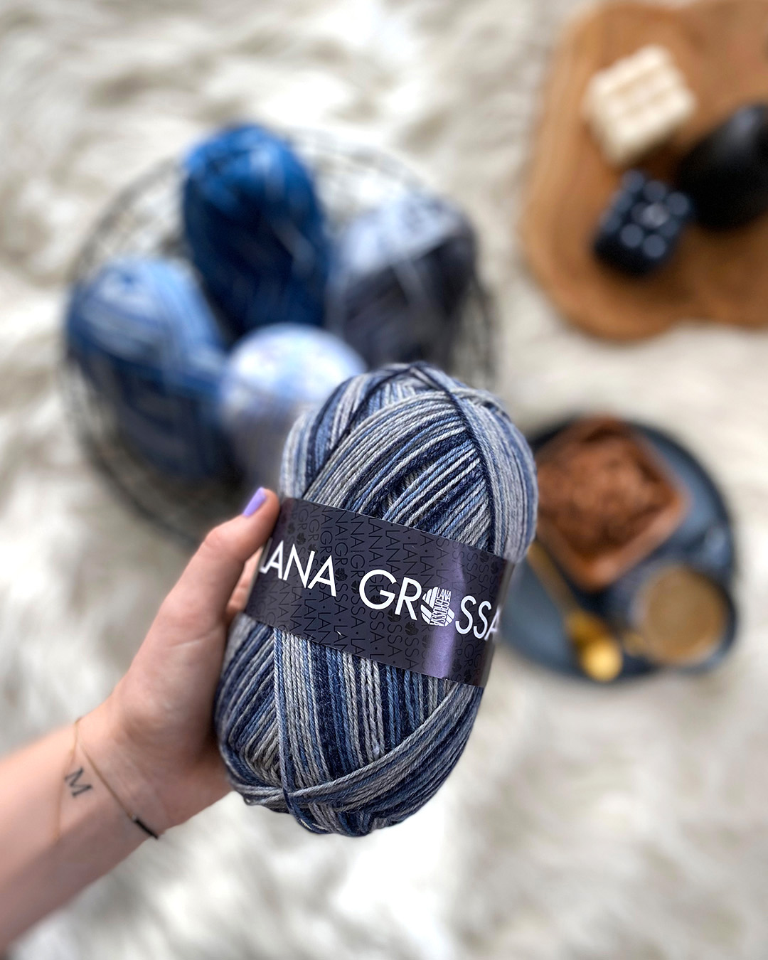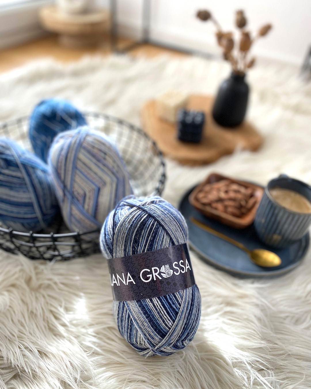 Lana Grossa Meilenweit 100 Blue Denim Mix kombiniert trendige Denim-Farbtöne mit bewährter Garnqualität.