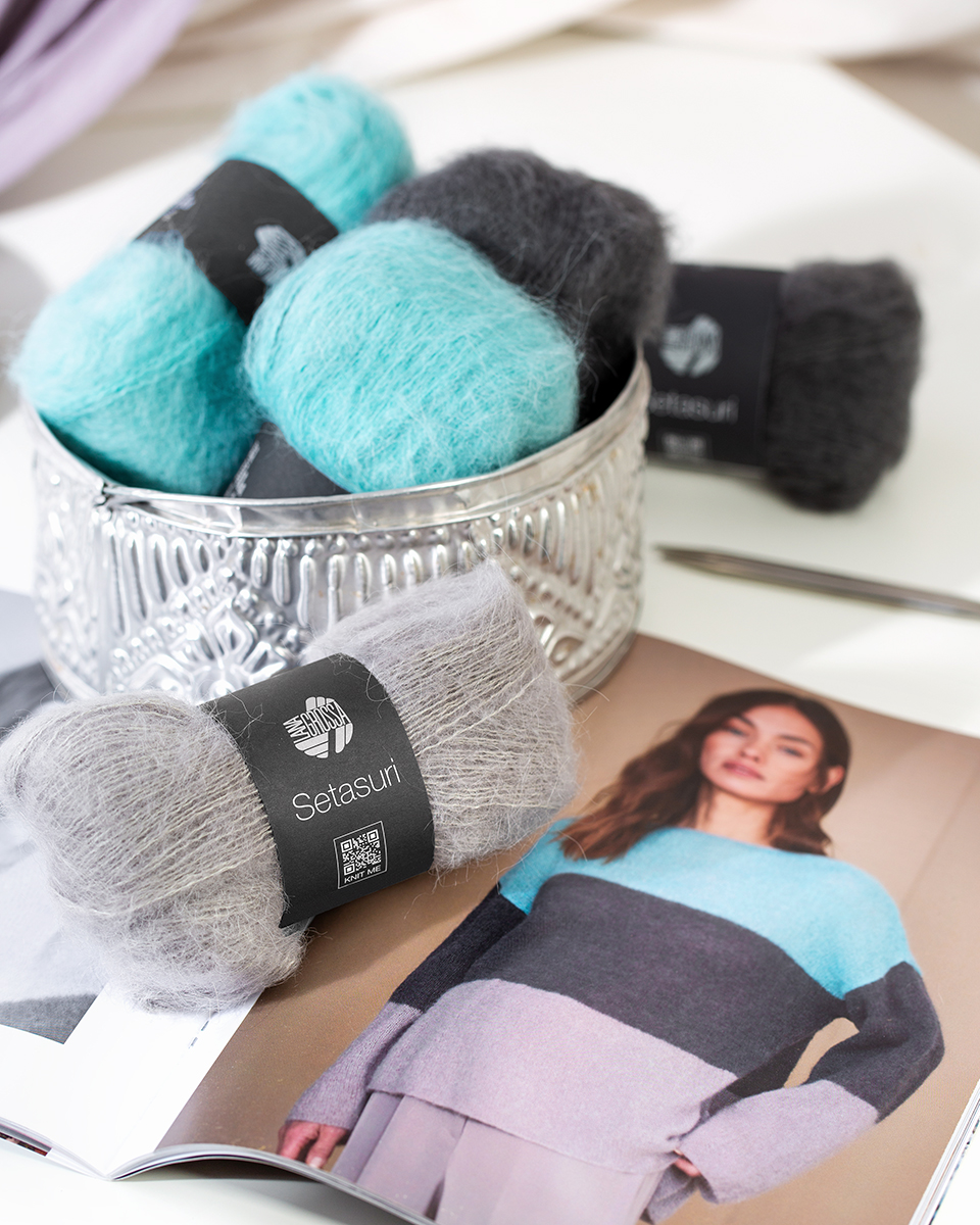 Ob solo verstrickt oder doppelt mit anderen Garnen kombiniert – Setasuri macht jedes Projekt zu etwas Besonderem.
