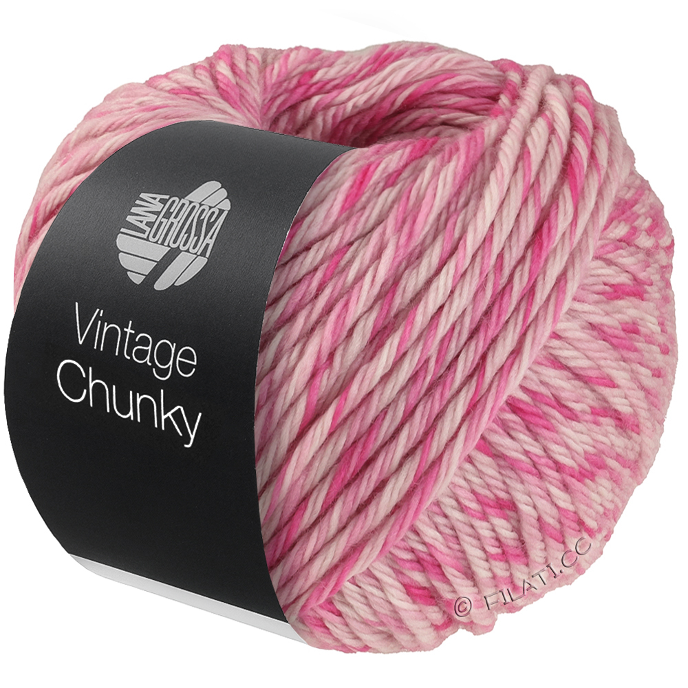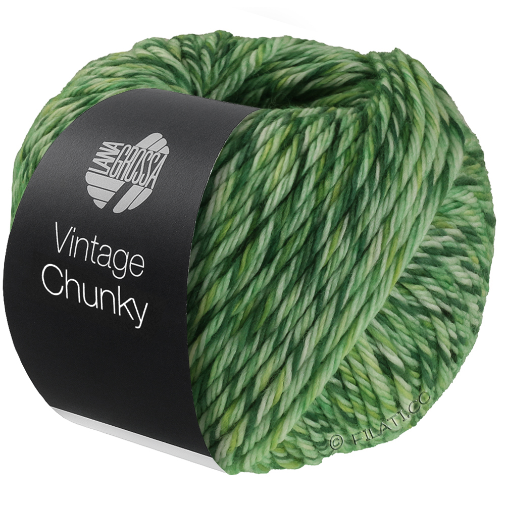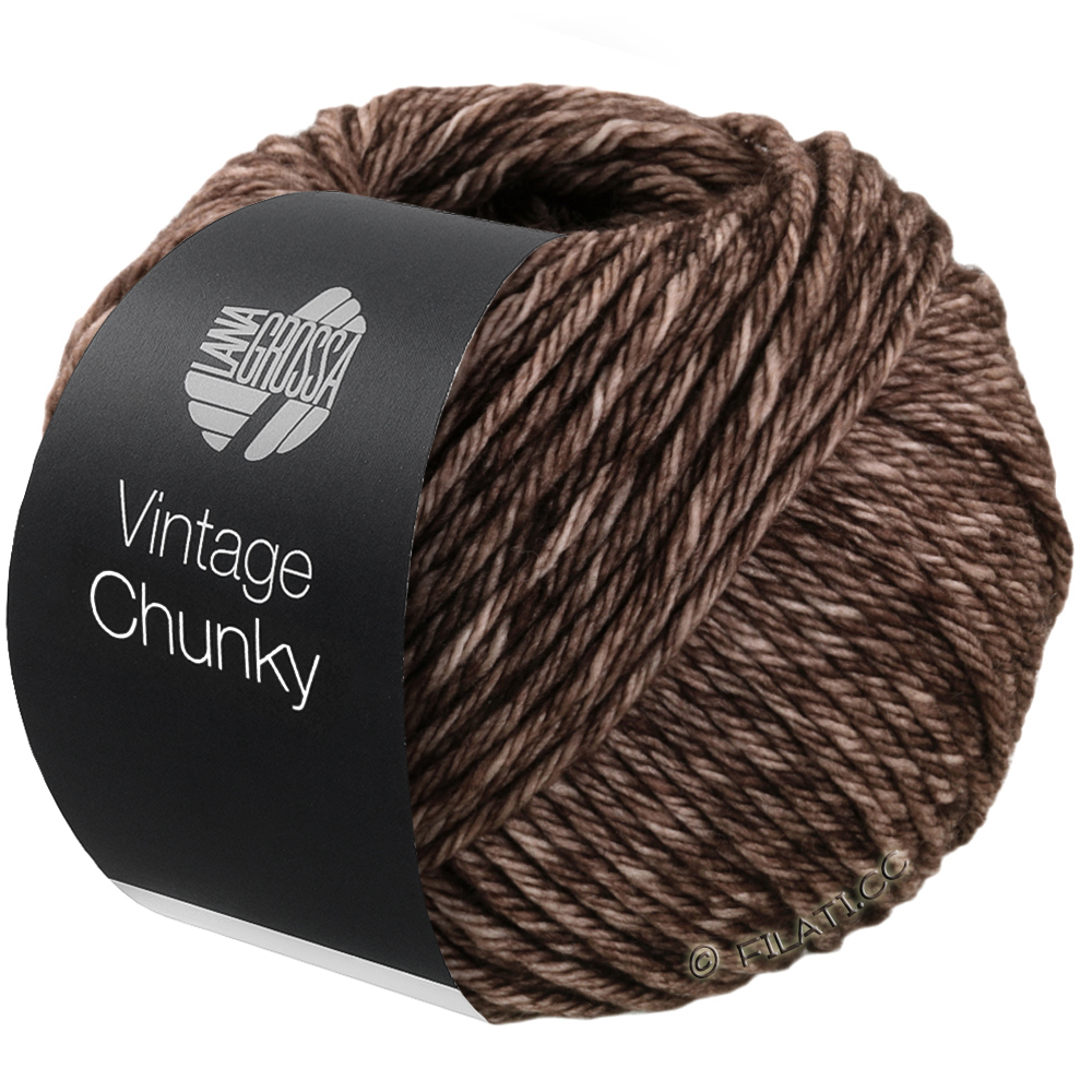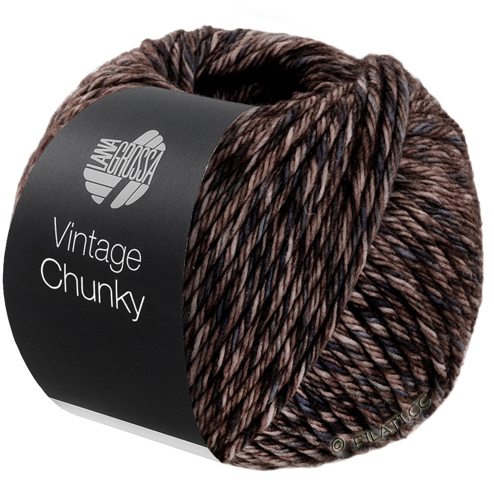 Vintage Chunky ist ein weiches, voluminöses Garn mit lässiger Mélange-Optik und charmantem Vintage-Charakter. 100% Schurwolle sorgen für angenehme Wärme und einen soften Griff – ideal für trendige Chunky-Knits, die schnell gestrickt sind und dabei richtig was hermachen.