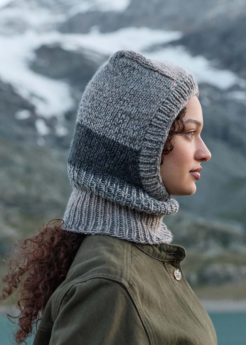 Lana Grossa-Qualität „Gomitolo Fumo“ (50 % Schurwolle, 50 % Polyacryl, LL = ca 700 m/200 g): 1 Knäuel = ca 200 g Zart-/Hell-/Mittel-/Dunkelgrau/Grège/Anthrazit (Fb 518); 1 kurze Rundstricknadel oder Nadelspiel Nr 5.