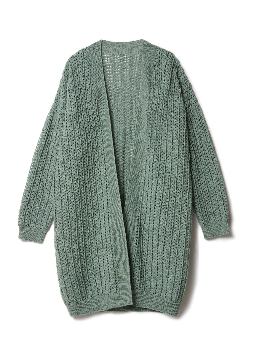 Beim langen Häkel-Cardigan aus verschiedenen Stäbchen sorgen Rippstrick-Blenden für einen sauberen Rahmen. Das Modell (Anleitung bis Größe 48/50) besteht aus einem neuen Baumwollschlauchgarn mit weicher Merino-Seele.