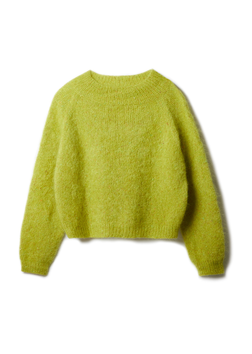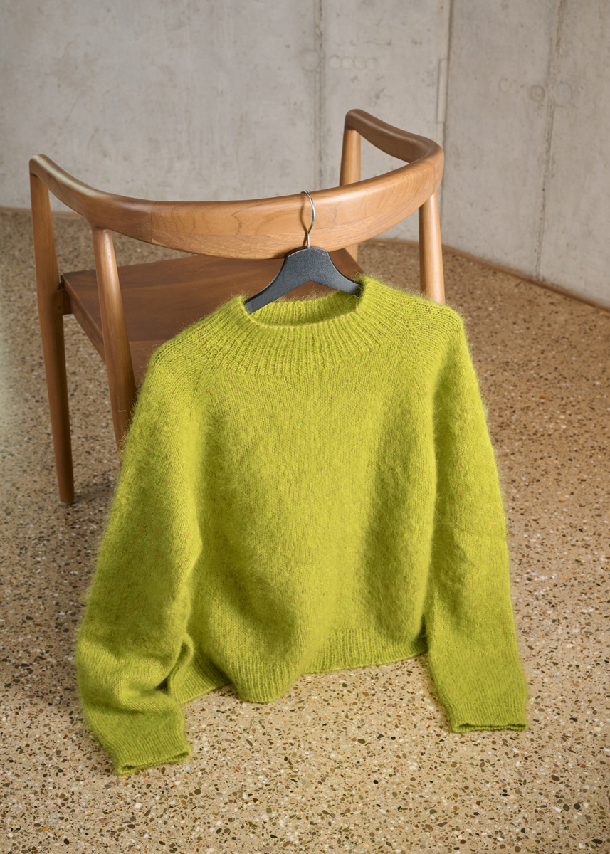 Lana Grossa Natural Superkid Tweed 60 % Mohair (Superkid), 30 % Seide, 7 % Baumwolle, 3 % Polyester, LL = 200 m/25 g in Pistazie (Fb. 626) (8) 9 (10) 10 (11) 12 (12) 12 (13) 14 Knäuel.