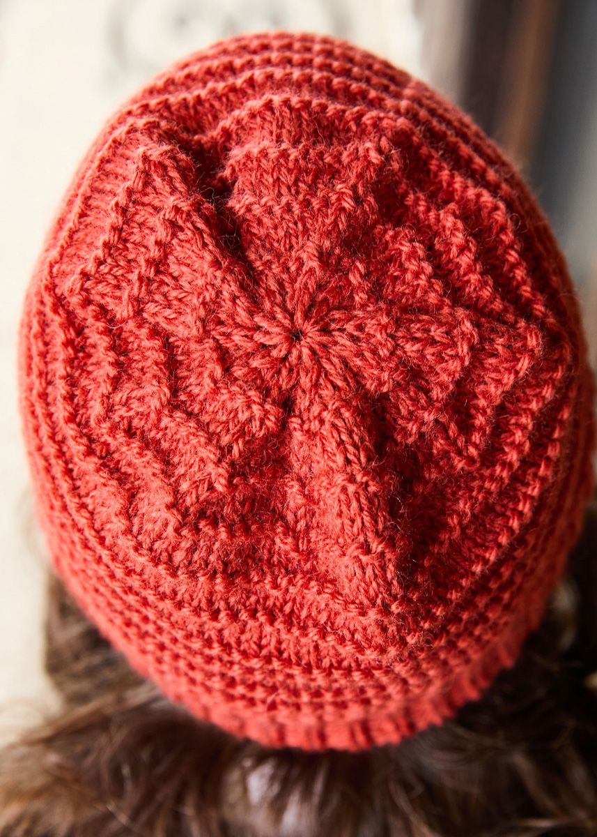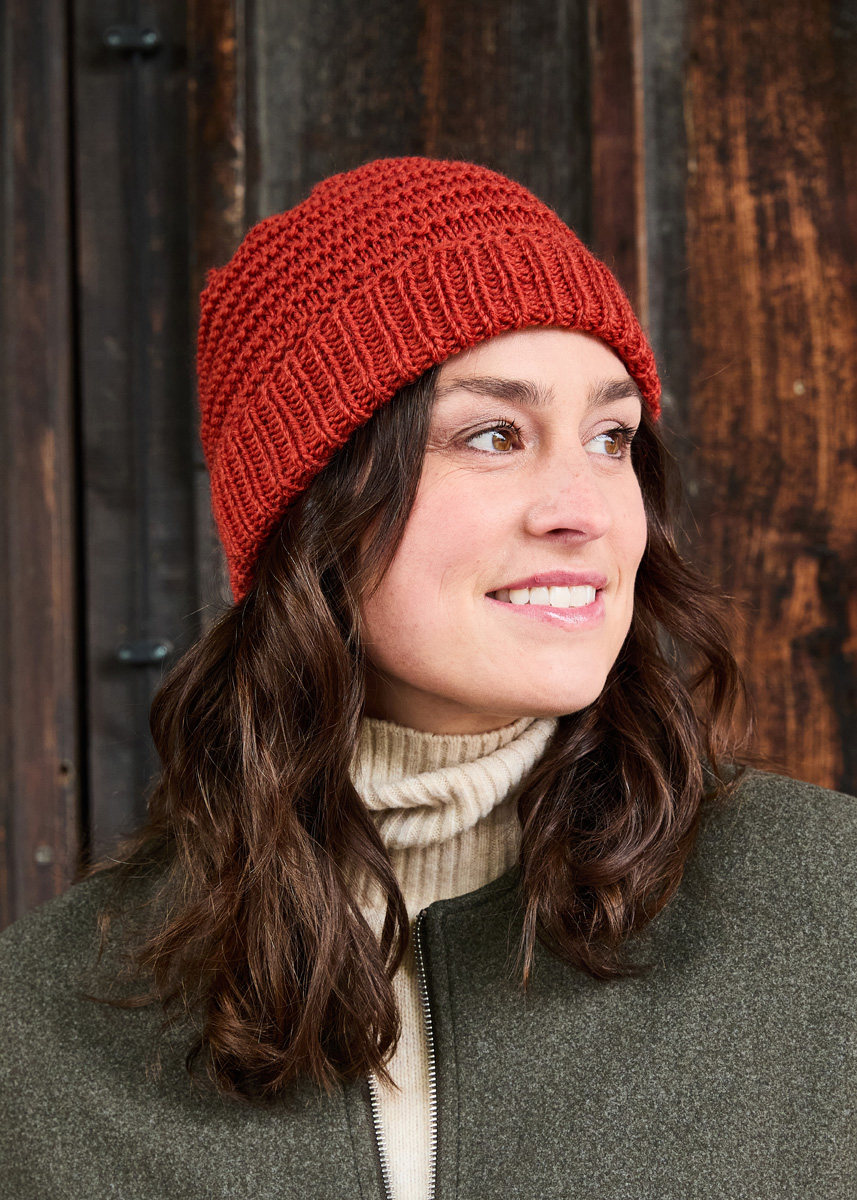 Lana Grossa-Qualität „Landlust- Naturwolle“ (100% norwegische Schurwolle, LL ca. 85 m/50 g), 100 g in Rostrot (Fb 22); 1 Rundstricknadel Nr. 4,5, 40 cm lang, 1 Nadelspiel Nr. 4,5.