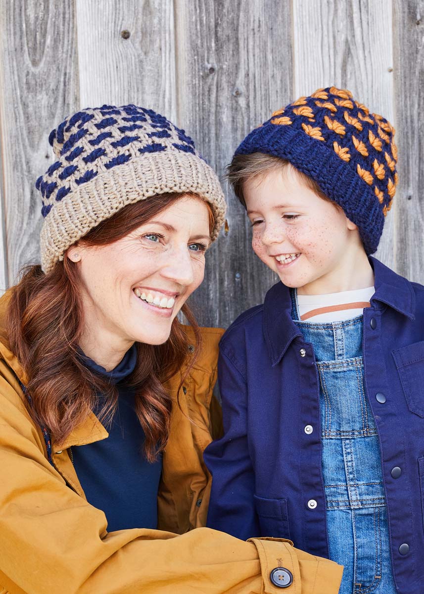 Lana Grossa-Qualität „Landlust- Winterwolle“ (50% Schurwolle (Merino), 35% Baumwolle, 15% Yak, LL ca. 70 m/50 g), 100 g in Beige Meliert (Fb 37) und 50 g in Nachtblau Meliert (Fb 31); je 1 Rundstricknadel Nr. 7 und Nr. 8, 40 cm lang, 1 Nadelspiel Nr. 8.