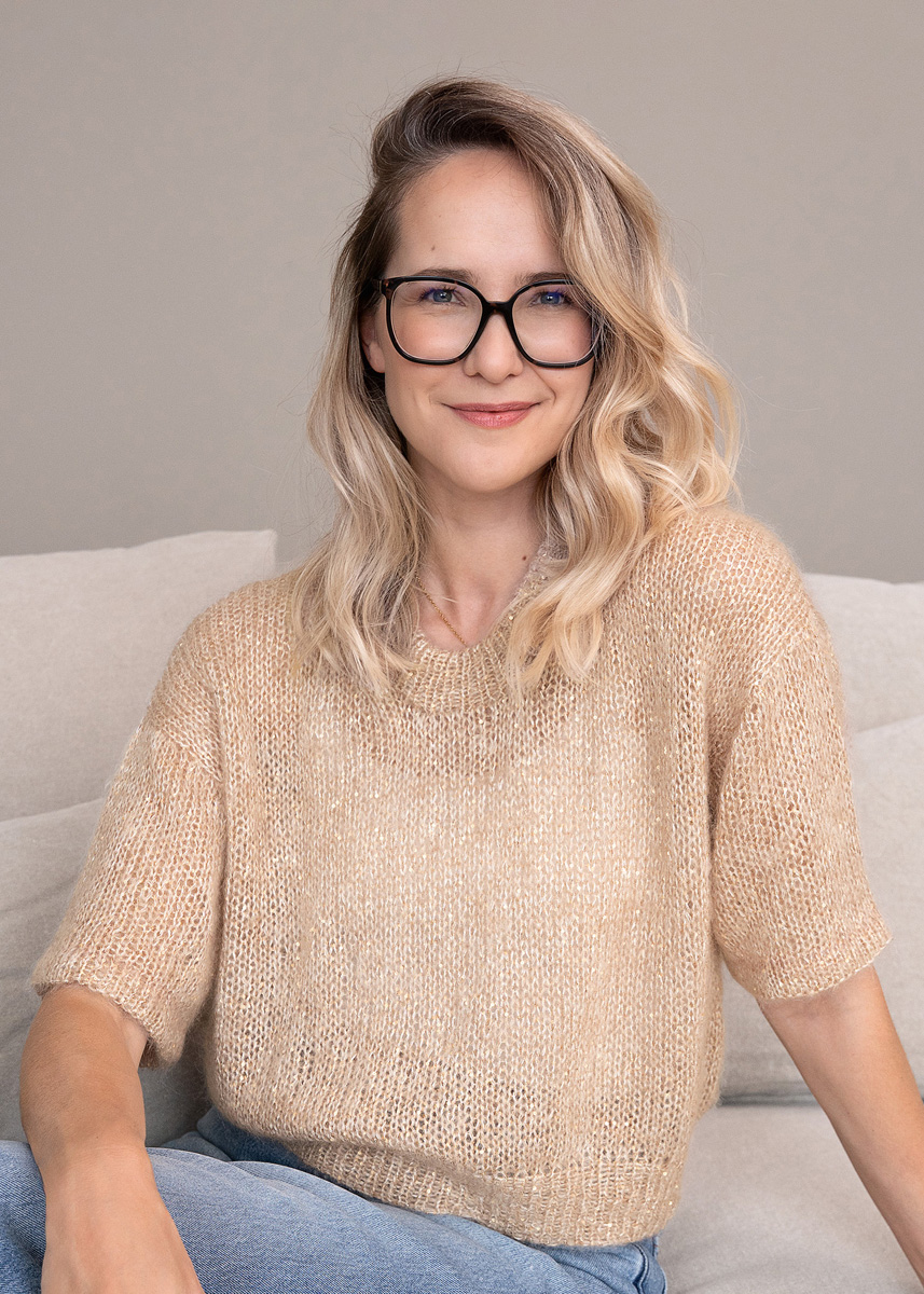 Das GlamShirt wird nahtlos top-down von oben nach unten gestrickt. Zunächst werden Maschen für das Rückenteil angeschlagen und in Hin- und Rückreihen begonnen. Die Schulterschrägen werden an beiden Seiten mithilfe verkürzter Reihen geformt. Anschließend wird über alle Maschen gerade herabgestrickt, bis die Armausschnitthöhe erreicht ist.