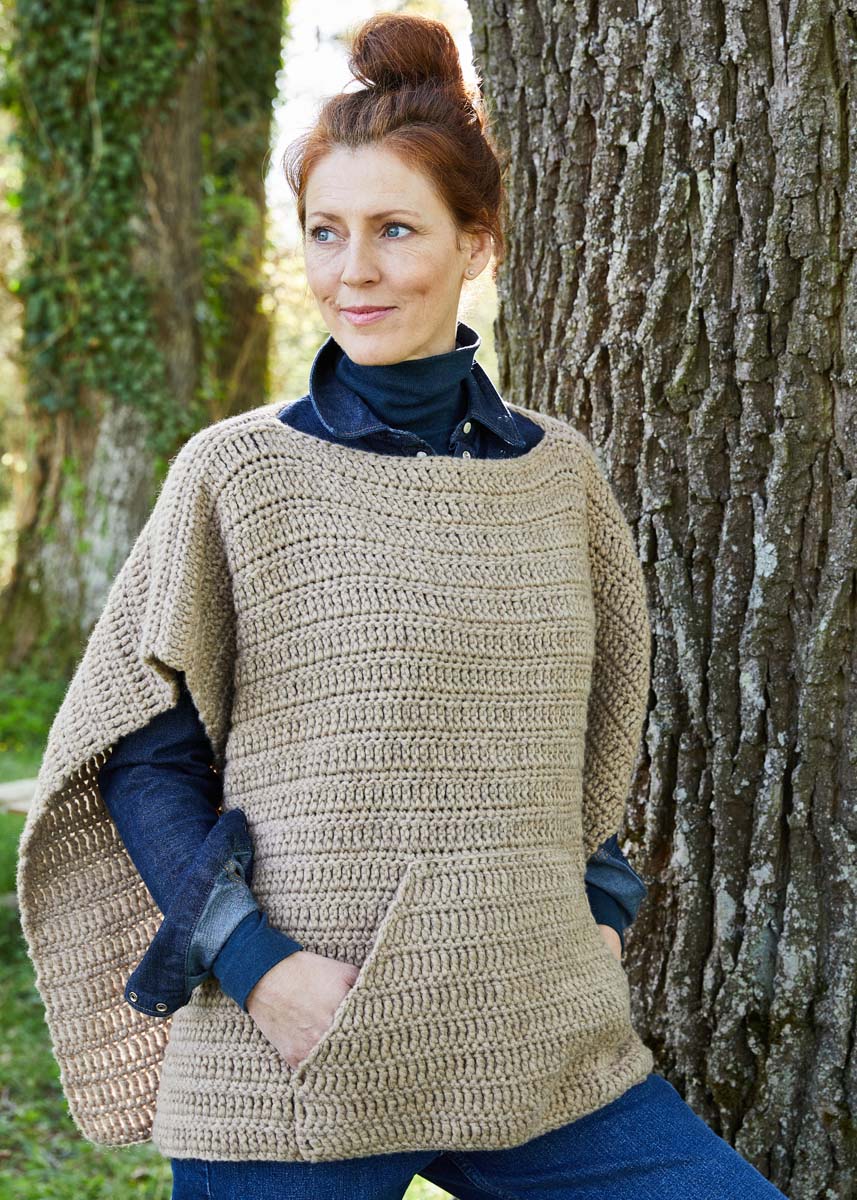 Lana Grossa-Qualität „Landlust- Winterwolle“ (50% Schurwolle (Merino), 35% Baumwolle, 15% Yak, LL ca. 70 m/50 g), 750 g in Beige Meliert (Fb 37); 1 Häkelnadeln Nr. 6.
