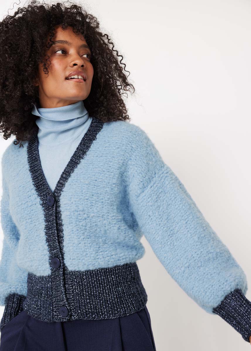 Dieses JÄCKCHEN lebt vom Materialmix aus einem flauschigen und einem schillernden Garn. Weite Ärmel und die breiten, schlanken Bündchen zaubern eine moderate Blouson-Form.
