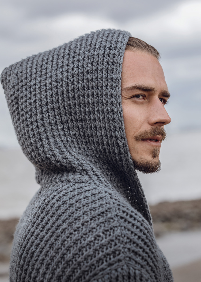 Ein bisschen Dufflecoat (Kapuze), ein bisschen Kabanjacke (doppelreihige Knopfleiste), dazu schlichte Rippen und Kaschmirmix in edlem Grau: gestatten, der Hoodie de Luxe!