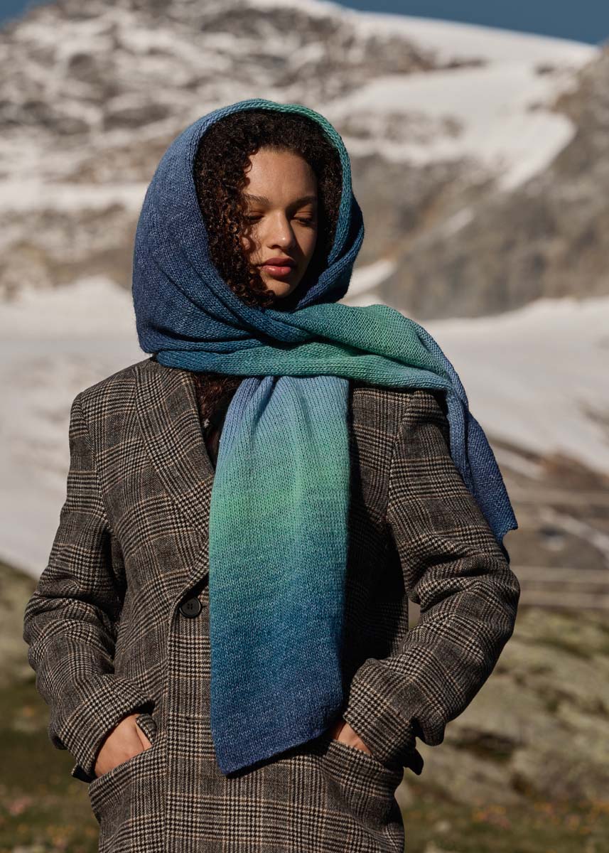 Lana Grossa-Qualität „Gomitolo Versione“ (60 % Schurwolle, 40 % Polyacryl, LL = ca 700 m/200 g): 1 Knäuel = ca 200 g Dunkelpetrol/Tiefseegrün/Seegrün/ Taubenblau (Fb 456); Stricknadeln Nr 5.