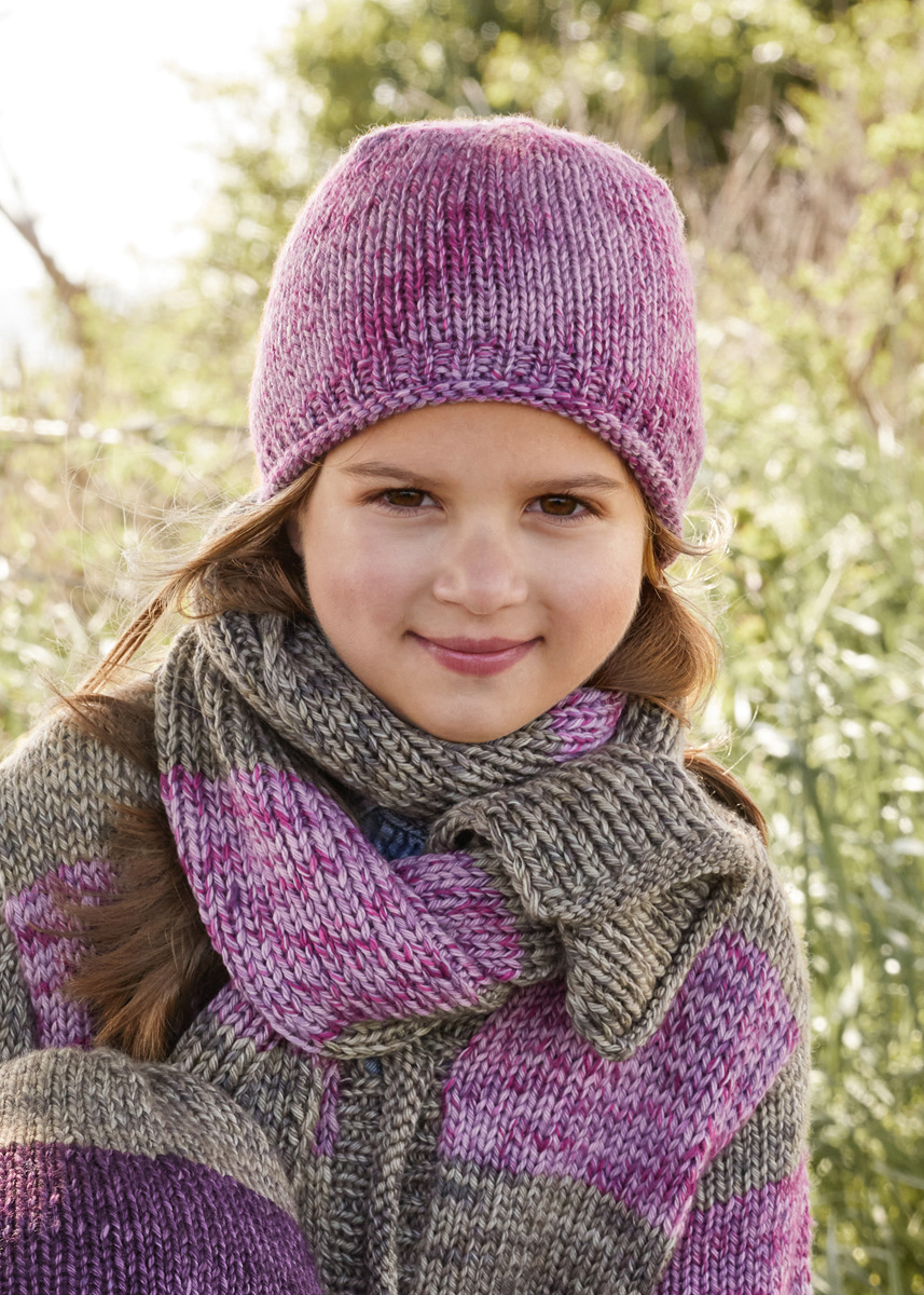 Lana Grossa Vintage Chunky (100 % Schurwolle (Merino extrafine), LL = ca 80 m/50 g), 50 g in Graubeige/Mauve (Fb 7). Spielstrick- Nd (Nadelspiel) Nr. 5 und Nr 6. 6 MM.