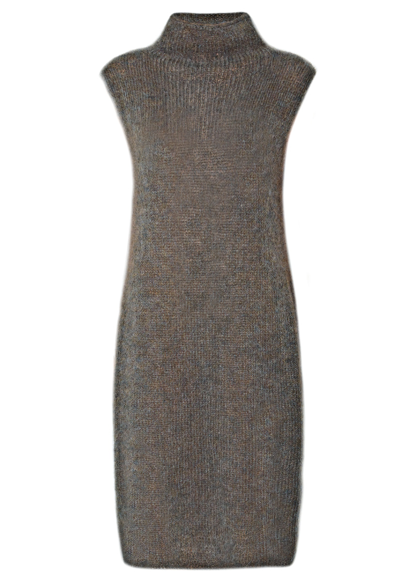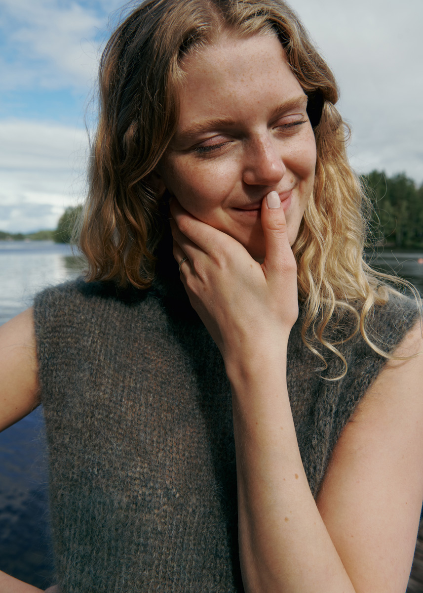 Lana Grossa-Qualität „Brigitte No. 3“ (40 % Mohair (Superkid), 37 % Schurwolle, 23 % Polyamid, Lauflänge 100 m/25 g): ca. 200 (225) g Schiefergrün (Fb. 37); Stricknadeln Nr. 6, 1 Rundstricknadel Nr. 6, 40 cm lang.