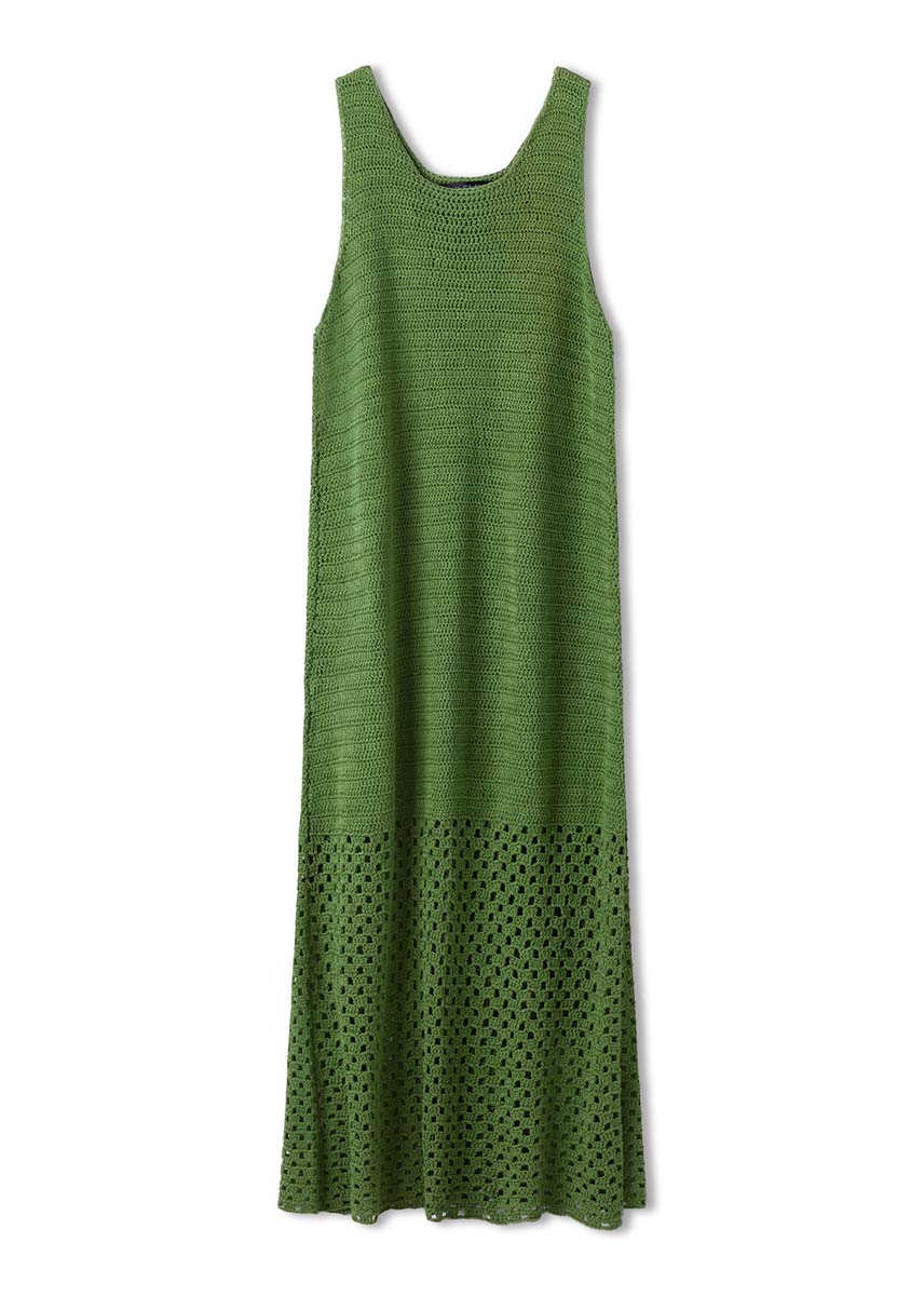 Lana Grossa-Qualität „Solo Lino” (80 % rec. Leinen (Viskose), 20 % Leinen, LL = ca. 120 m/50 g): ca. 850 (900) g Grün (Fb. 74); je 1 Wollhäkelnadel Nr. 2,5 und 3.