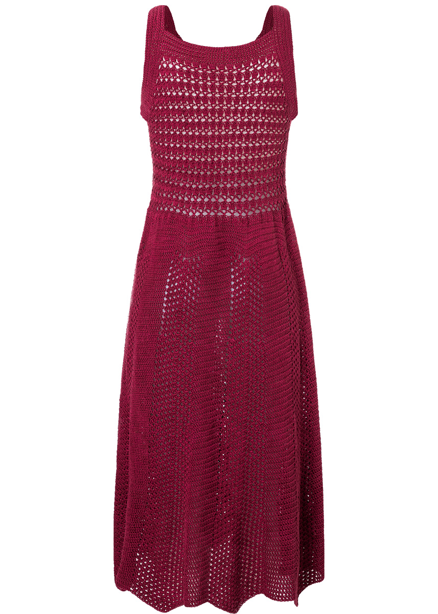 Knöchellang, mit in Form gestricktem Top und drei verschiedenen Häkelmustern macht dieses Kleid viel Eindruck – aber auch viel Arbeit.