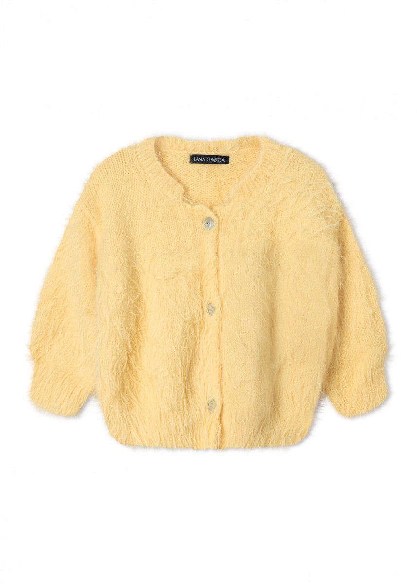 Lana Grossa-Qualität „Basta“ (50% Schurwolle ( Merino), 50 % Polyamid, LL = ca 100 m/50 g): 350 (350 - 400 - 450) g Vanille (Fb 32); Stricknadeln Nr 4 und 5; 3 (4 - 4 - 4) Perlmuttknöpfe Durchmesser 20 mm.