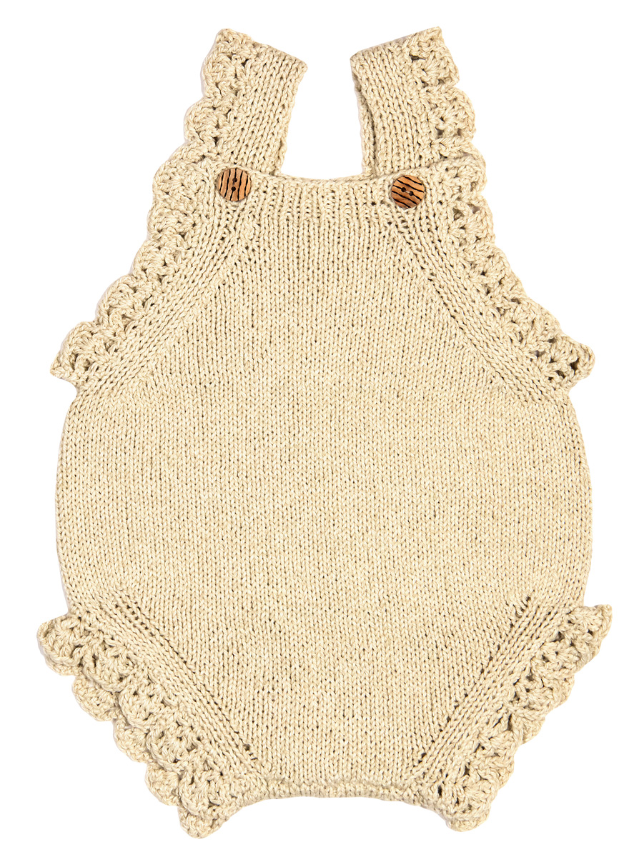 Lana Grossa Landlust Sommerseide (50 % Seide, 50 % Baumwolle, Lauflänge 170 m/50 g) 100 (100/150) g Natur (Fb 2); Stricknadeln Nr. 3, eine 40 cm lange Rundstricknadel Nr. 3, Häkelnadel Nr. 2,5; zwei Knöpfe mit 15 mm Ø.