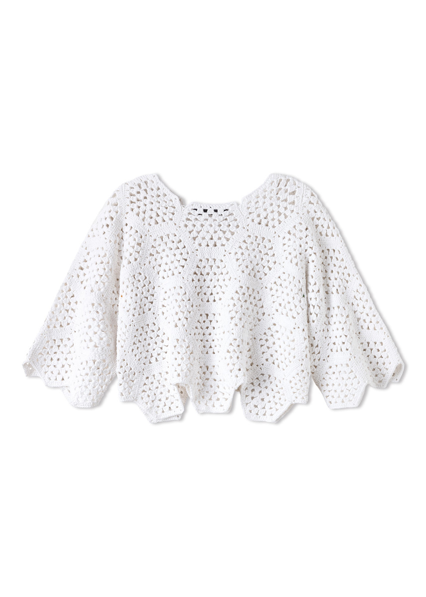 Sechseckige Häkel-Grannys bringen diesen Pullover auf Zack. Kastig geschnitten und in klassischem Weiß, wirkt das Modell cool und clean.