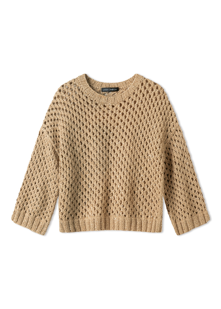Der Lochmuster-Pulli wird stets mit doppeltem Faden, je Qualität 1 Faden, gestrickt.