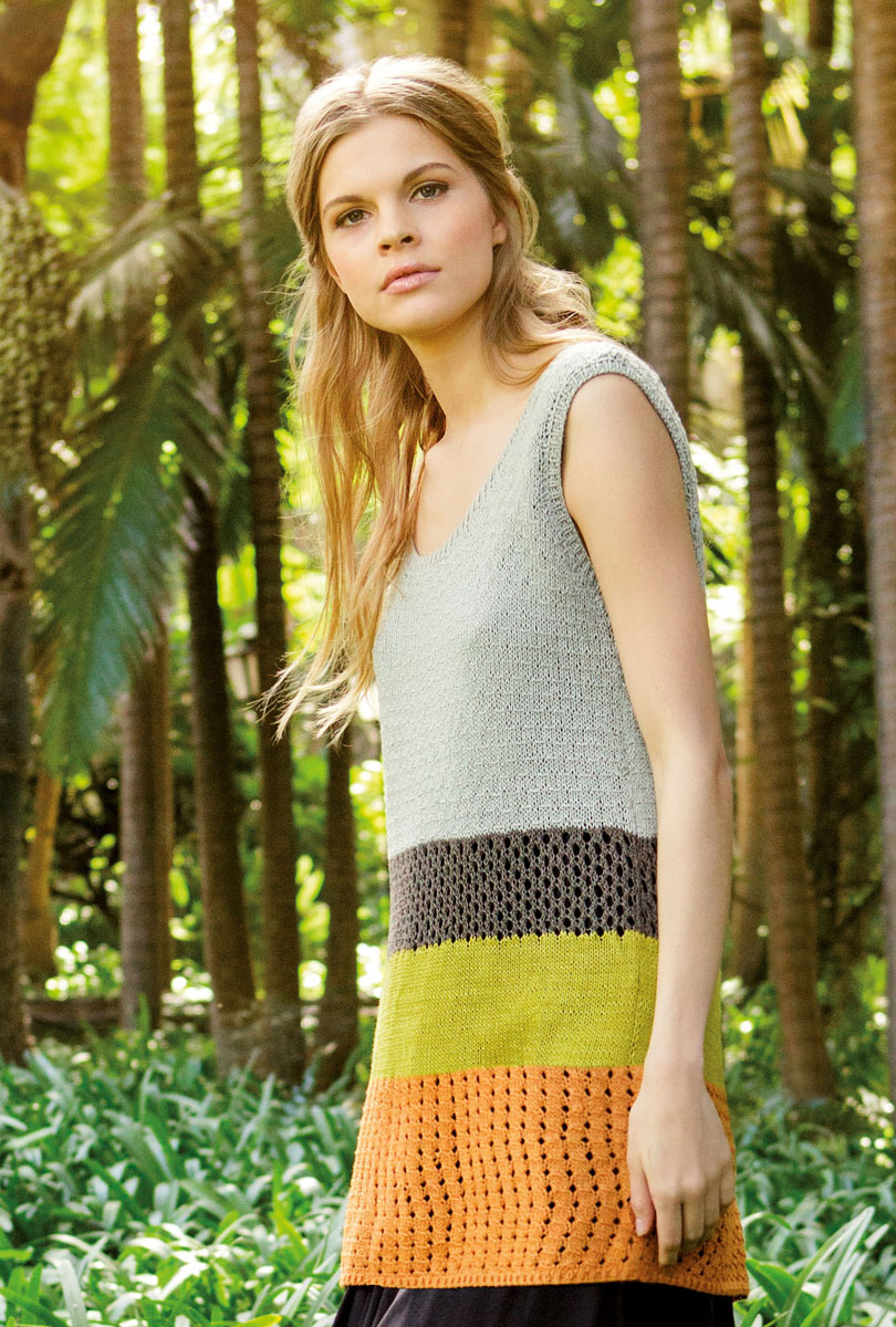 Lana Grossa-Qualität „Solo Lino” (80 % recyceltes Leinen (Viskose), 20 % Leinen, LL = ca. 120 m/50 g): ca. 200 (250 – 300) g Hellgrau (Fb. 5), ca. 150 (150 – 200) g Cognac (Fb. 10), ca. 100 (100 – 150) g Olivgrün (Fb. 6) und ca. 50 (100 – 100) g Schlamm (Fb. 7); Stricknadeln Nr. 3 und 3,5, 1 Rundstricknadel Nr. 3, 60 cm lang, 1 Wollhäkelnadel Nr. 3.