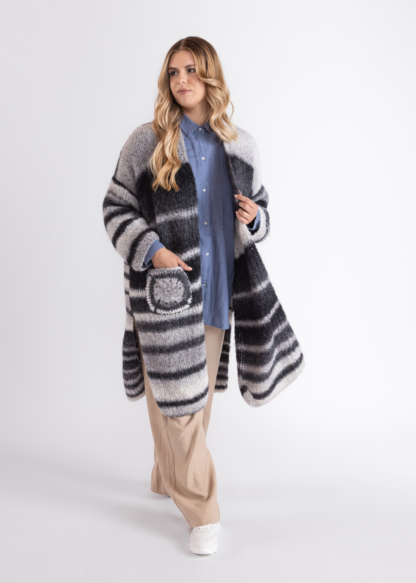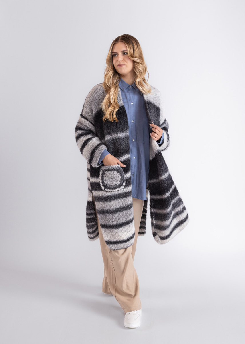Das Modell hat eine Gesamtlänge von 103 (105 - 107 - 109 - 111 - 113) cm und eine Brustmehrweite von 42 cm bei 80 cm Brustumfang (40 cm bei 88 cm Brustumfang - 40 cm bei 96 cm Brustumfang - 40 cm bei 104 cm Brustumfang - 34 cm bei 116 cm Brustumfang - 30 cm bei 128 cm Brustumfang).