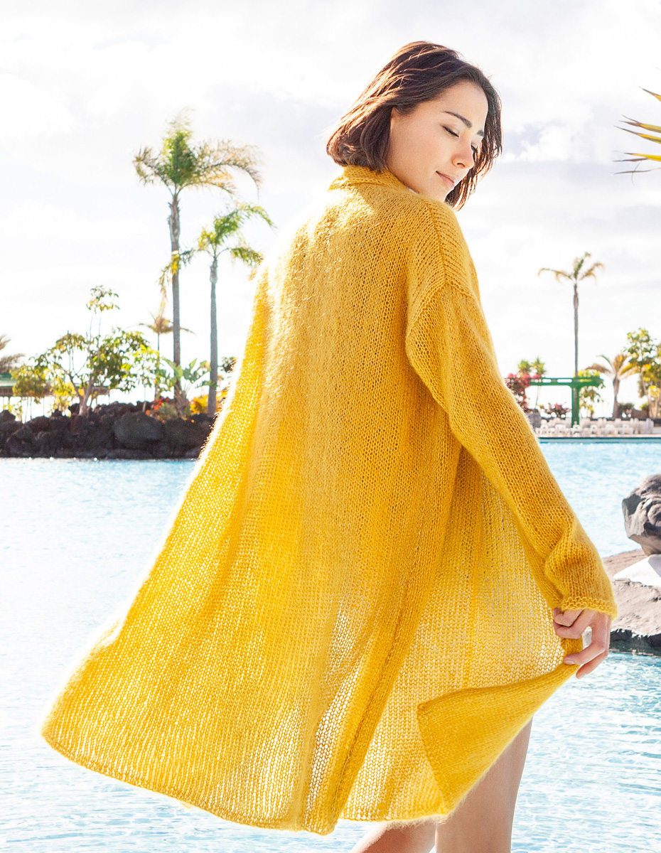 Urlaub in Sicht? Diese Long-Jacke passt in jeden Koffer – und zum Badeanzug genauso, wie zum Abend-Outfit. Das Sonnengelb steht Ihnen nicht? Kein Problem – die umfangreiche Farbpalette des Garns liefert für jeden Typ den richtigen Ton.