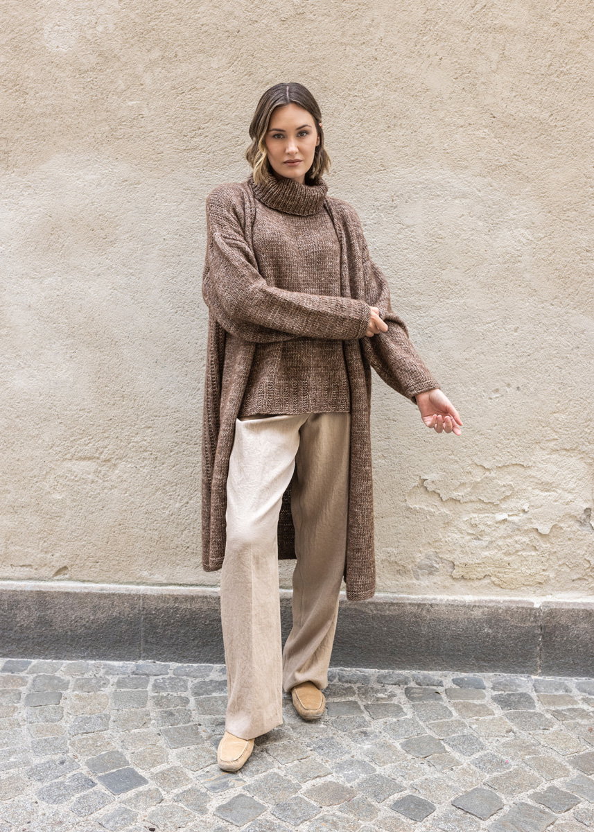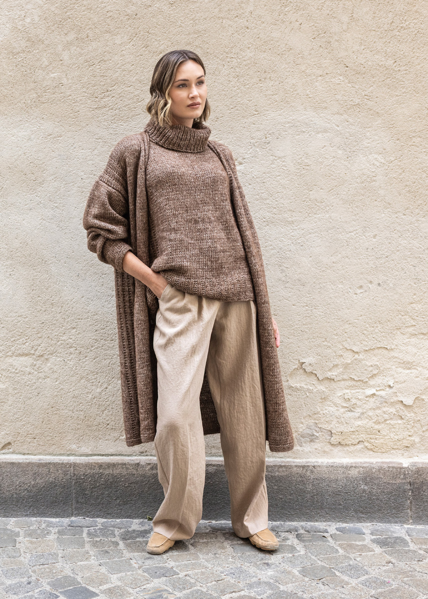 • 500 (550 - 600 - 650 - 700 - 700) g Dunkelbraun meliert (Fb 8) oder Rohweiß/Zartgrau (Fb 2)