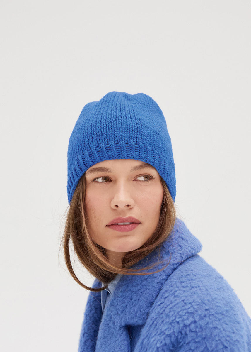 Lana Grossa „Cool Wool Superbig“ (100% Schurwolle (Merino extrafine), LL = 80 m/50 g): 100 g Blau (Fb 15); Nadelspiel Nr 5,5.