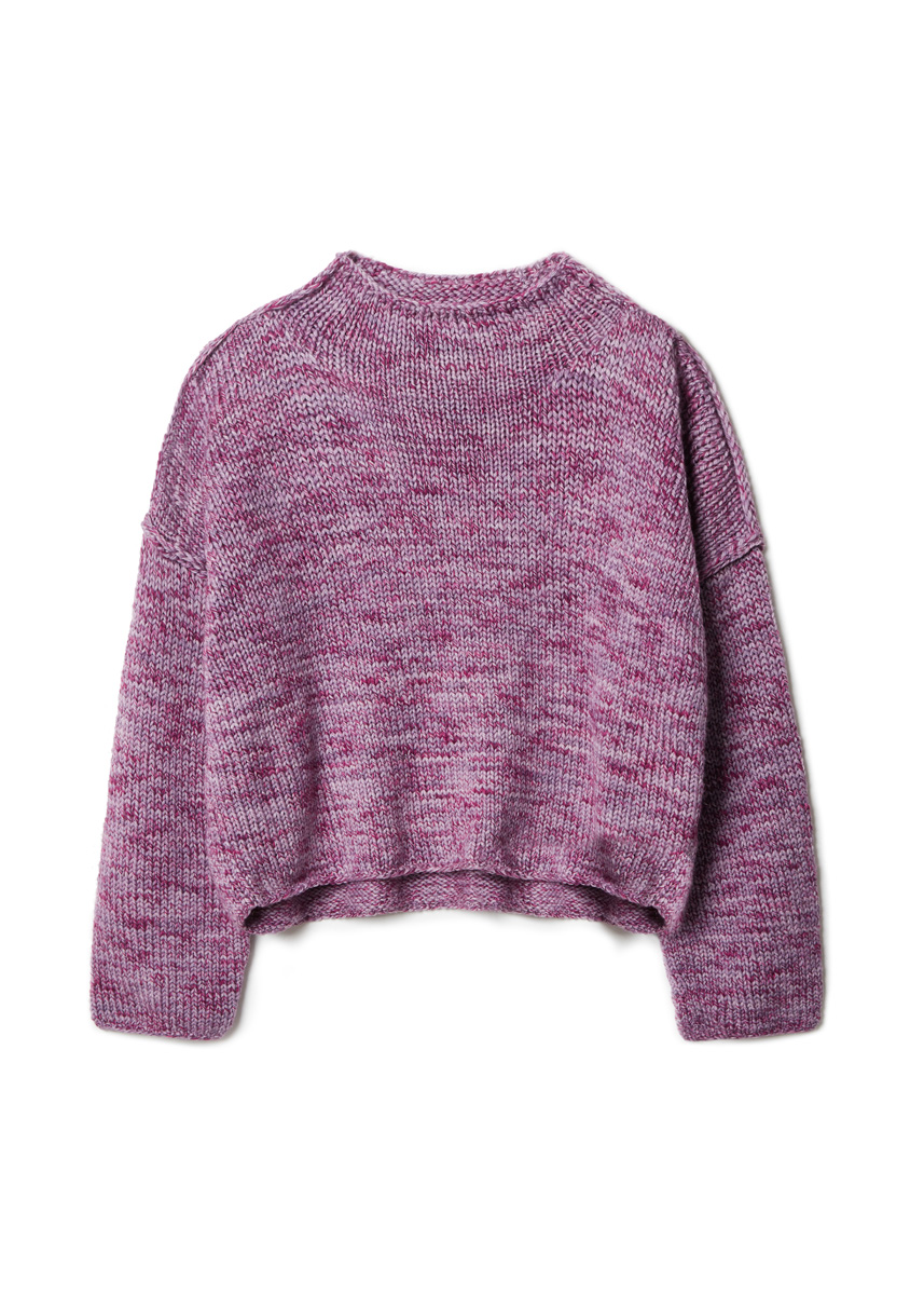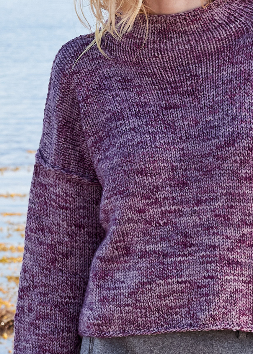 Lana Grossa Vintage Chunky (100% Schurwolle (Merino), LL = ca 80 m/50 g), 550 (600 - 650 - 700) g in Graubeige/Mauve (Fb 7). Stricknd Nr. 5 und Nr 6; je eine 50 cm lange Rundstrick-Nd Nr 5 und Nr. 6. 2 Hilfs-Nd zum M stilllegen.