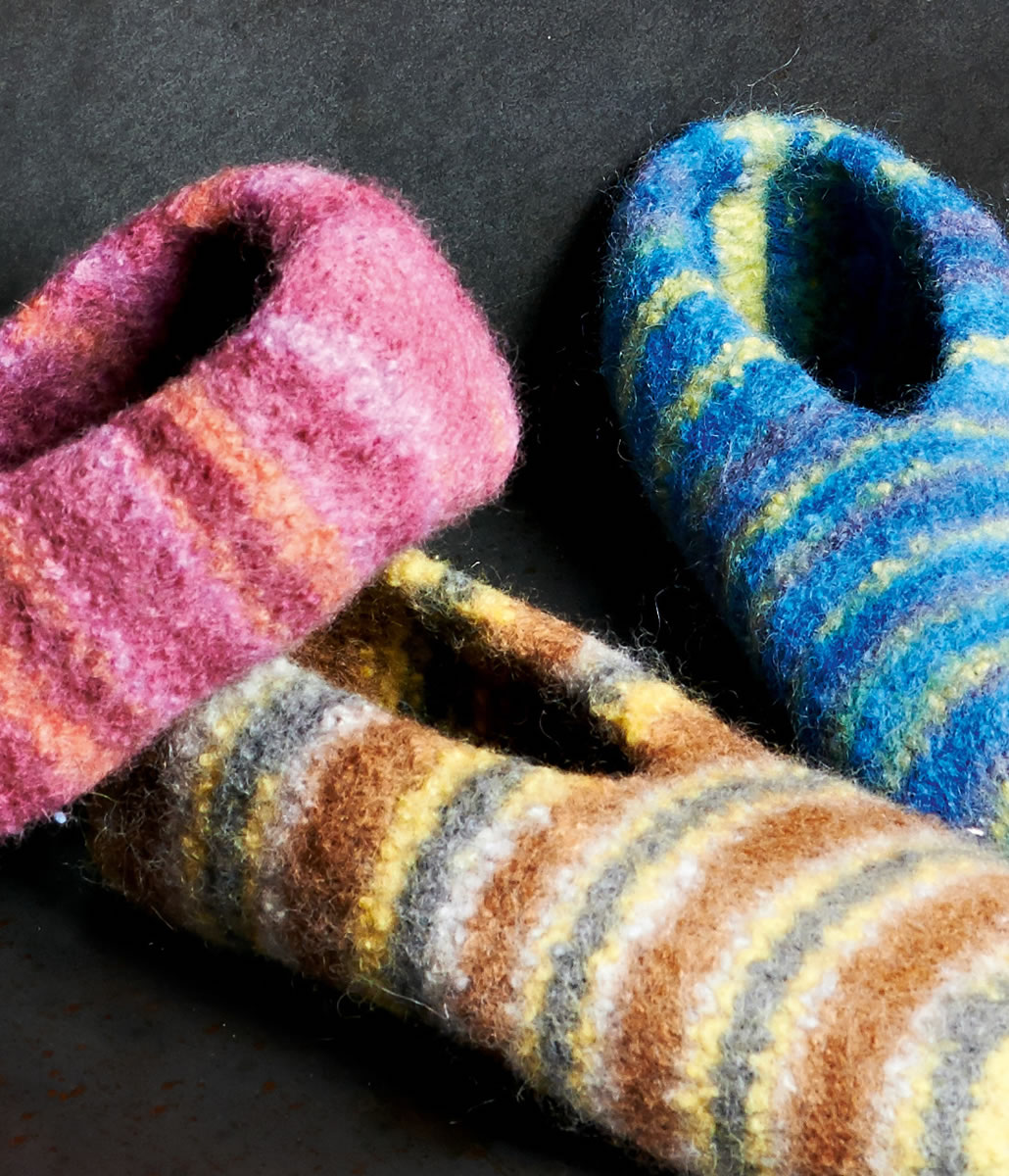 „Feltro Print“ (100% Schurwolle, LL = 50 m/50 g), Camel/Schilf/Rost (Fb 325) und 2 Pompons, Art. „Fuchs“, Beige (Fb 03), oder Rosa/Bordeaux/Lachs (Fb 330) und 2 Pompons, Art. „Fuchs“, Brombeer (Fb 11), oder Zyklam/Aubergine/Graulila (Fb 329) und 2 Pompons, Art. „Fuchs“, Grau (Fb 02), oder Pink/Lila/Gelb (Fb 328), oder Camel/Gelb/Grau (Fb 326), oder Türkis/Hellgrün/Marine (Fb 308). g), 1 Nadelspiel Nr. 8, 1 Wollnähnadel, 1 Schere, 1 Waschmaschine und etwas Waschmittel.