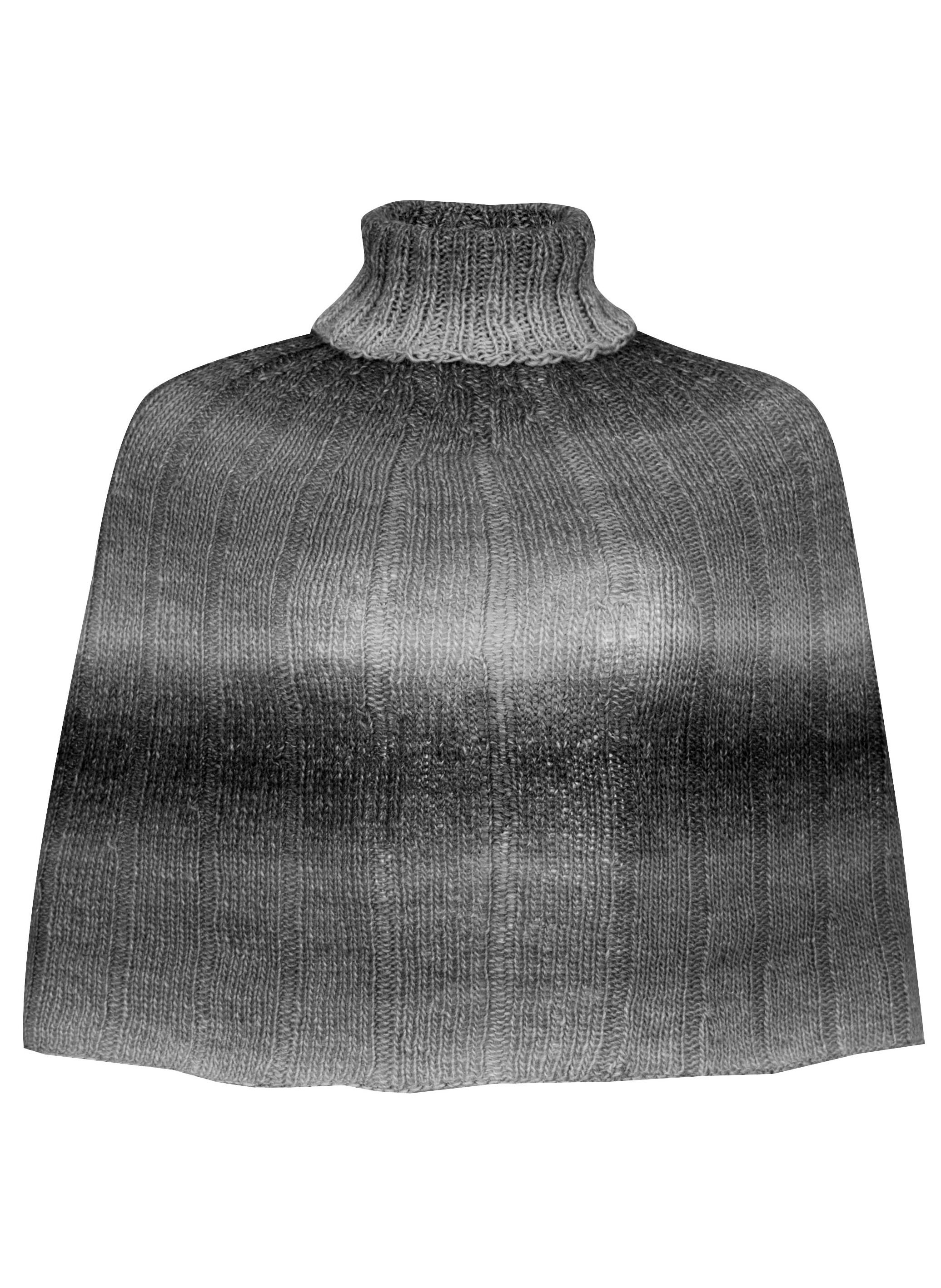 Lana Grossa Gomitolo Versione (60 % Schurwolle, 40 % Polyacryl, Lauflänge 700 m/200 g) 200 (400 – 400) g Beige/Camel/Graubraun (Fb 403); je eine 40, 60 und 80 cm lange Rundstricknadel Nr. 5.