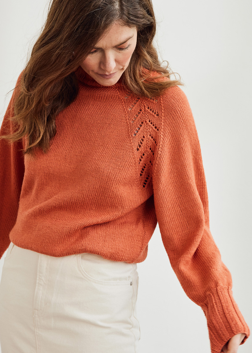 Lana Grossa-Qualität „Cool Wool Seta“ (80% Schurwolle (Merino extrafine), 20% Seide, 160m/50g); 500 (550 - 600 - 650 - 700) g Rostrot (Fb 8) Stricknadeln und eine ca. 40 cm lange Rundstricknadel Nr. 3,5