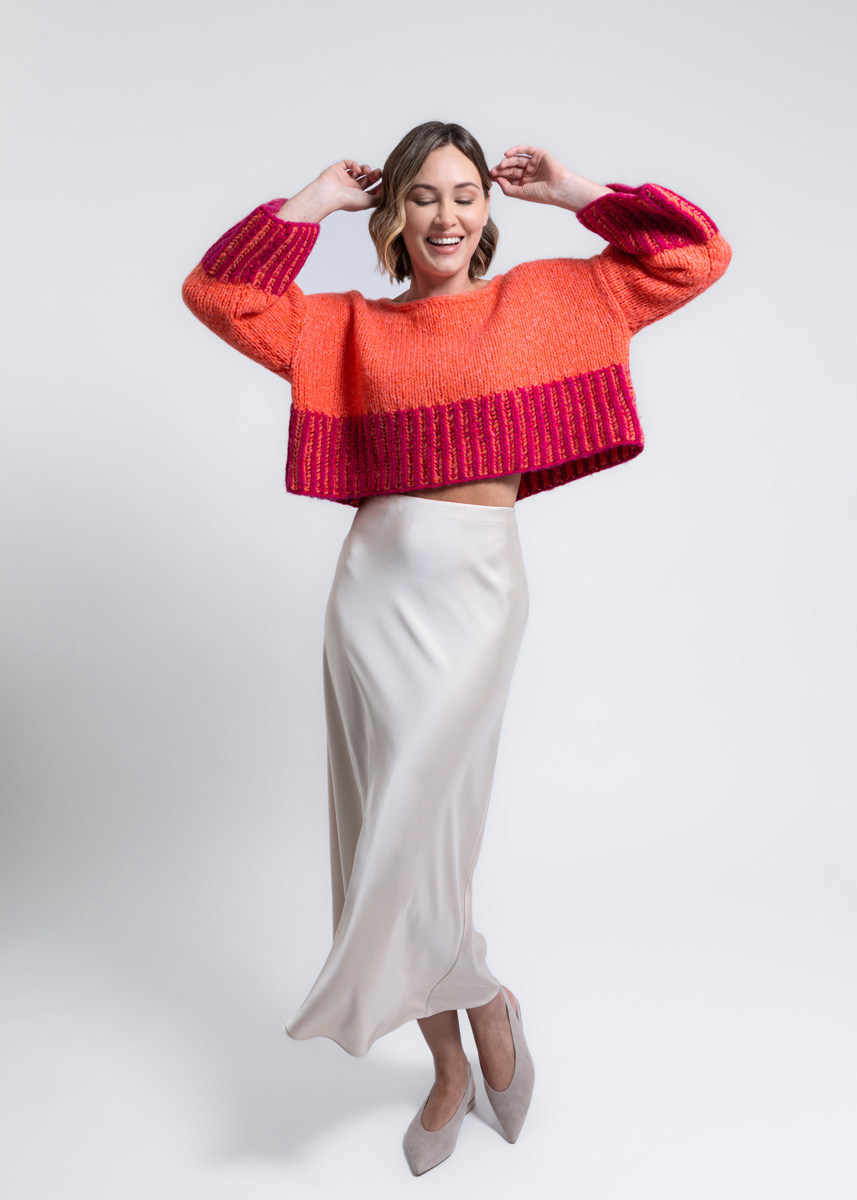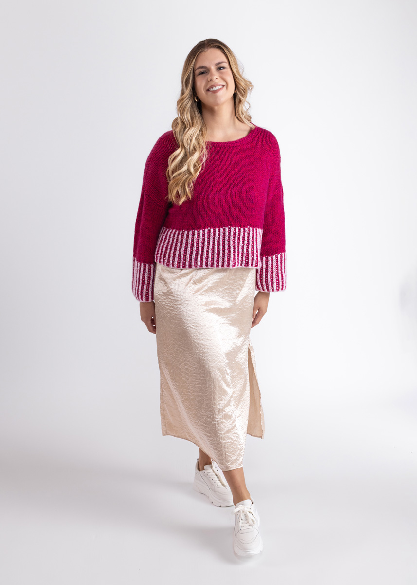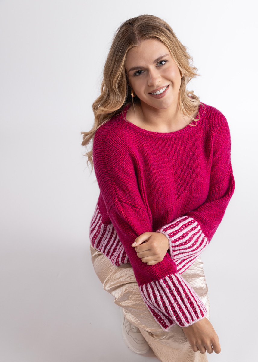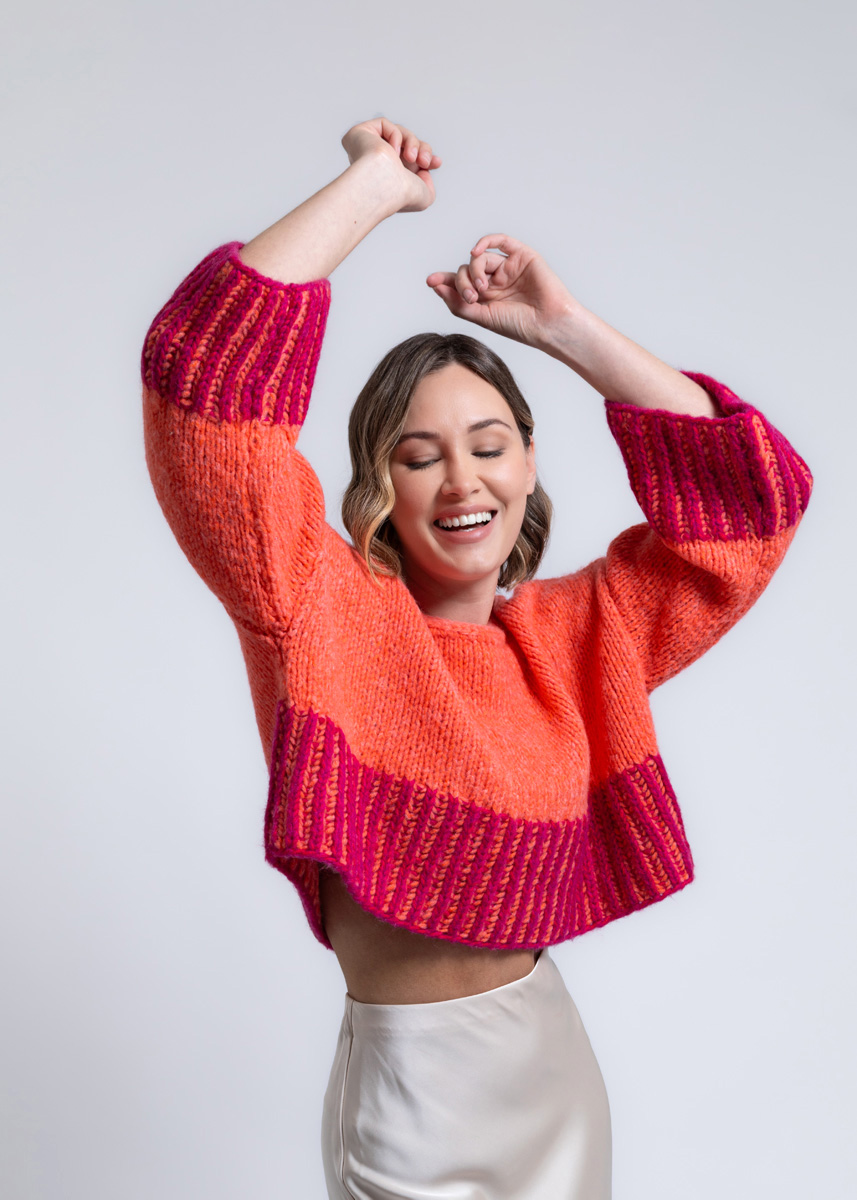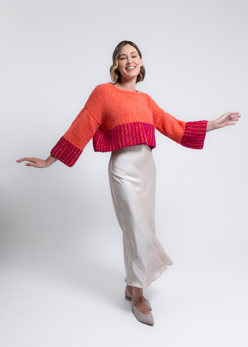 • 350 (400 - 400 - 500 - 500 - 500) g Leuchtorange (Fb 144) oder Pink (Fb 117)