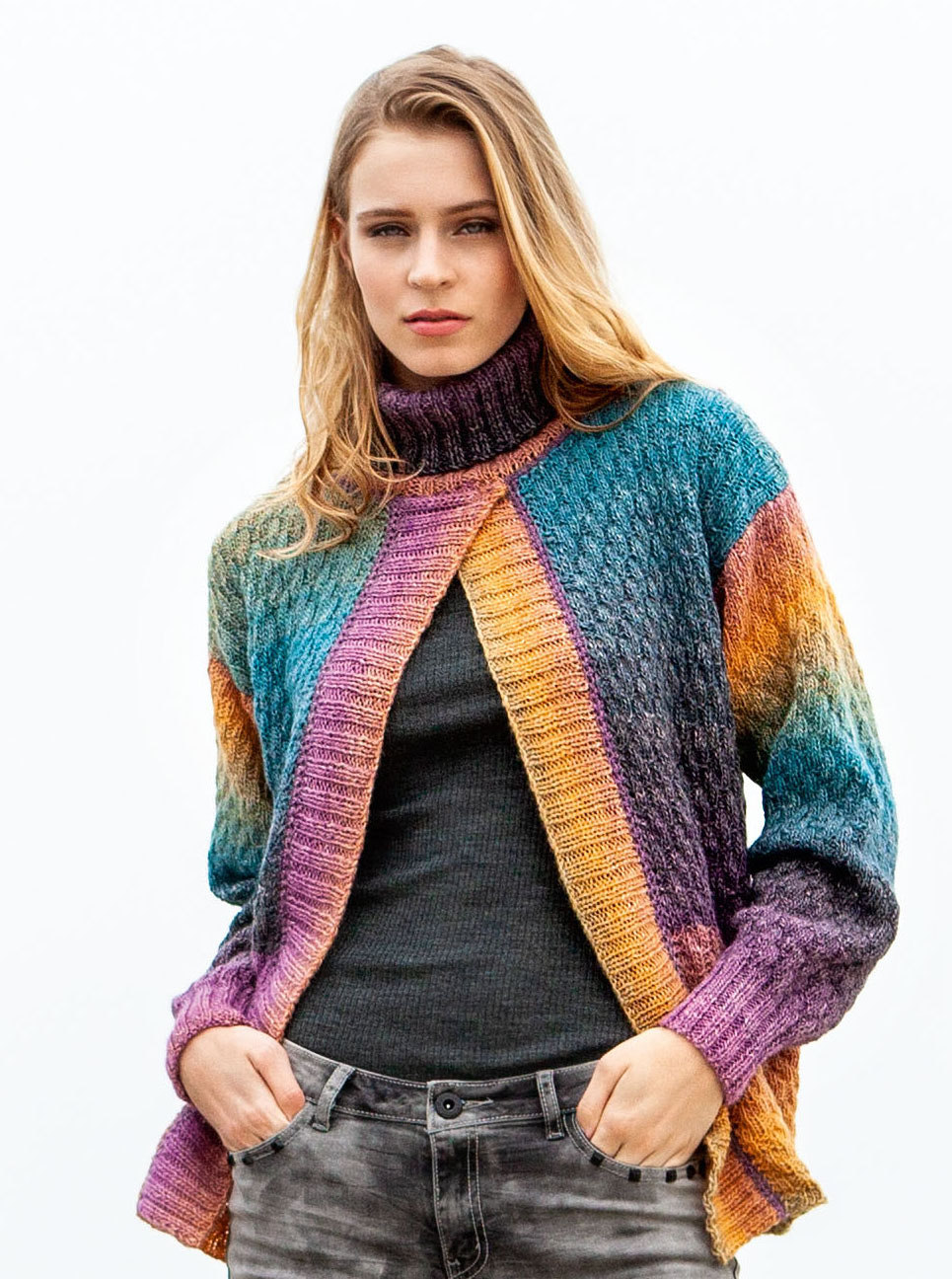 Lana Grossa Gomitolo Versione (60 % Schurwolle, 40 % Polyacryl, Lauflänge 700 m/200 g) 400 (600 – 600) g Altrosa/Senf/Petrol/Grau (Fb 405); Stricknadeln Nr. 3,5 und 4, eine 40 cm lange Rundstricknadel Nr. 3,5; Häkelnadel Nr. 3,5.