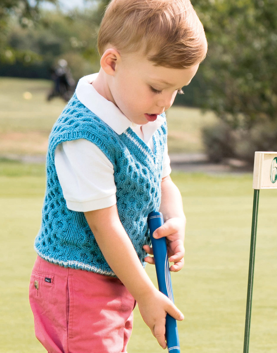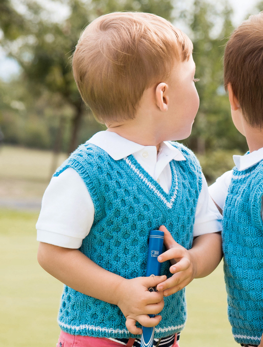 Lana Grossa Cool Wool (100 % Schurwolle, Lauflänge 160 m/50 g) 100 (150/150/150) g Mintblau (Fb 2048) und 50 g Weiß (Fb 431); Stricknadeln Nr. 3,5, eine 40 cm lange Rundstricknadel Nr. 3,5.