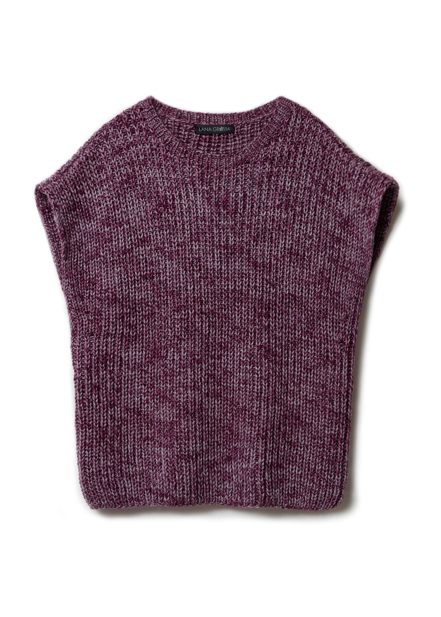 Lana Grossa Vintage Chunky (100% Schurwolle (Merino), Lauflänge 80 m/50 g), 600 (650 – 700) g Graubeige/Mauve (Fb. 7); Stricknadeln Nr. 5 und 1 Rundstricknadel Nr. 4,5, 40 cm lang.