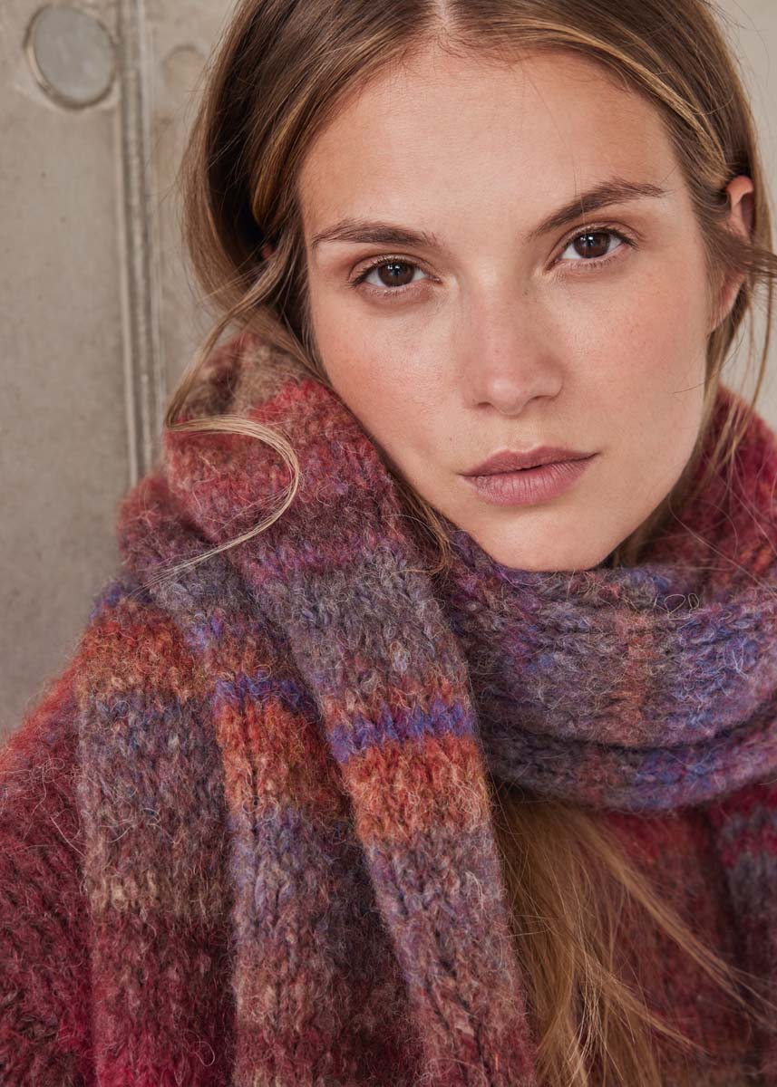 Ausdrucksstark, stylisch, extrem bequem: Beim Set aus MAXIKLEID und XL-SCHAL gehen Komfort und Klasse Hand in Hand. Gestrickt wird glatt rechts. Der lebhafte Ringel-Look kommt über das Print-Garn aus einem weichen Alpakagemisch.