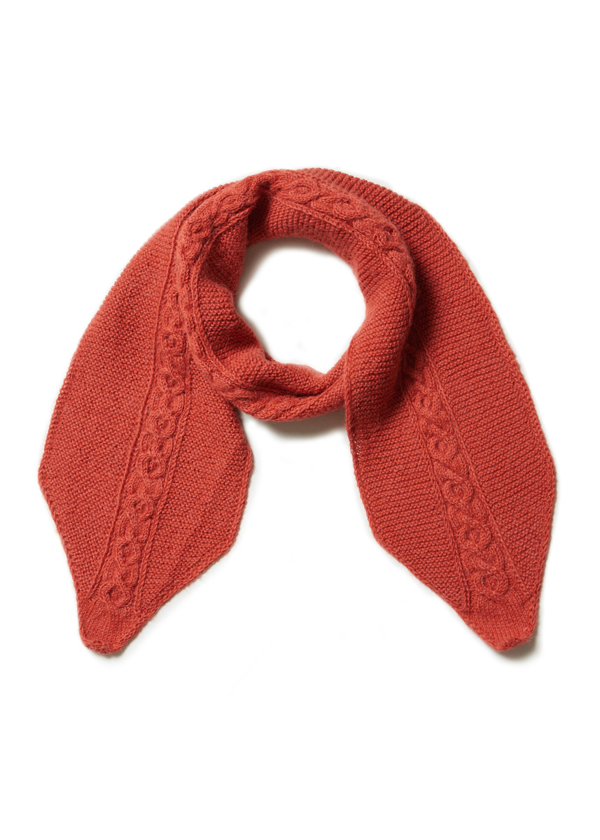 Lana Grossa Meilenweit 100g Seta (55% Schurwolle (Merino), 25% Polyamid, 20% Seide, Lauflänge 400 m/100 g), 200 g Tonrot (Fb. 27); 1 Rundstricknadel Nr. 3, 60 cm lang, 1 Zopfnadel und 2 Maschenmarkierer.