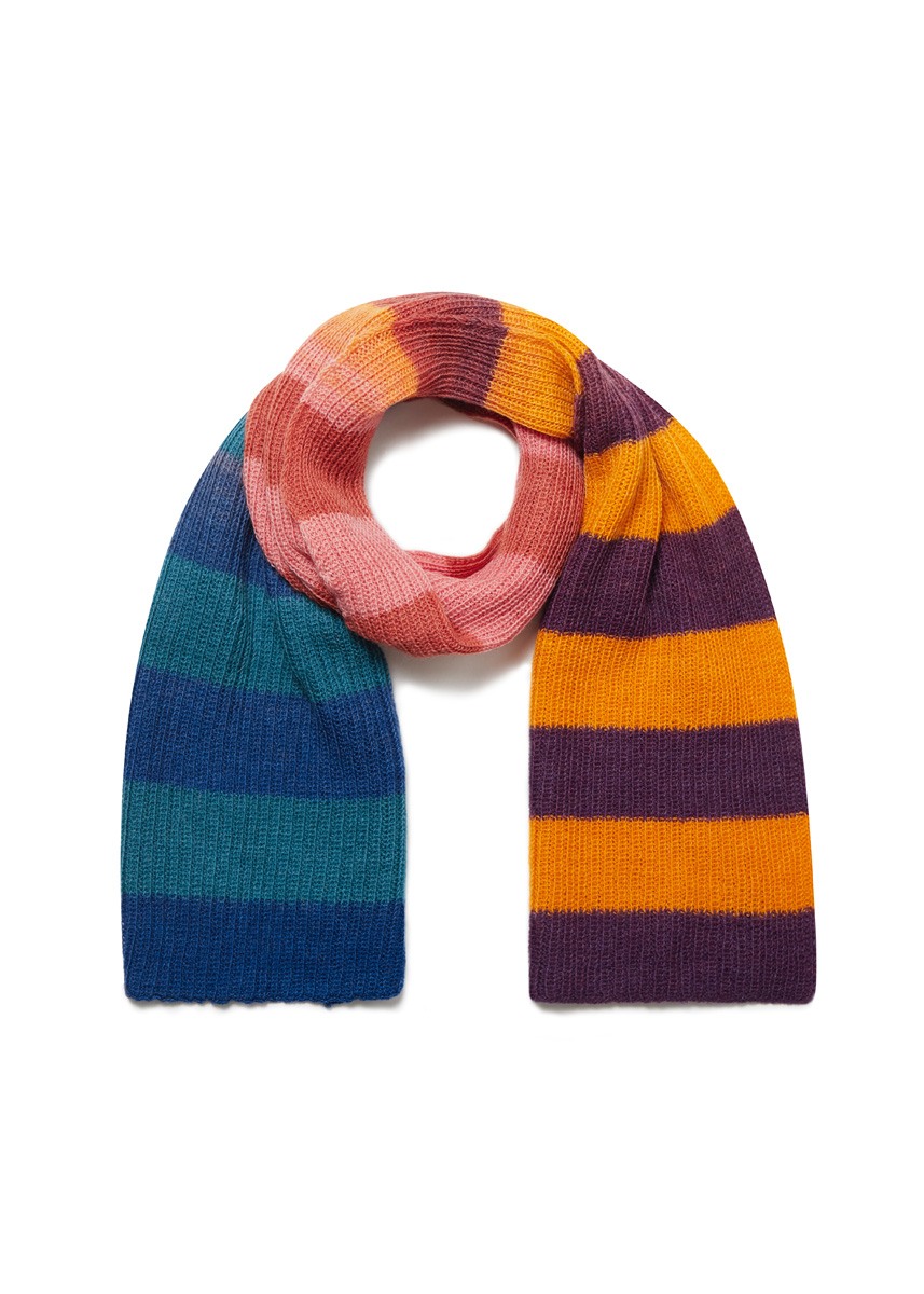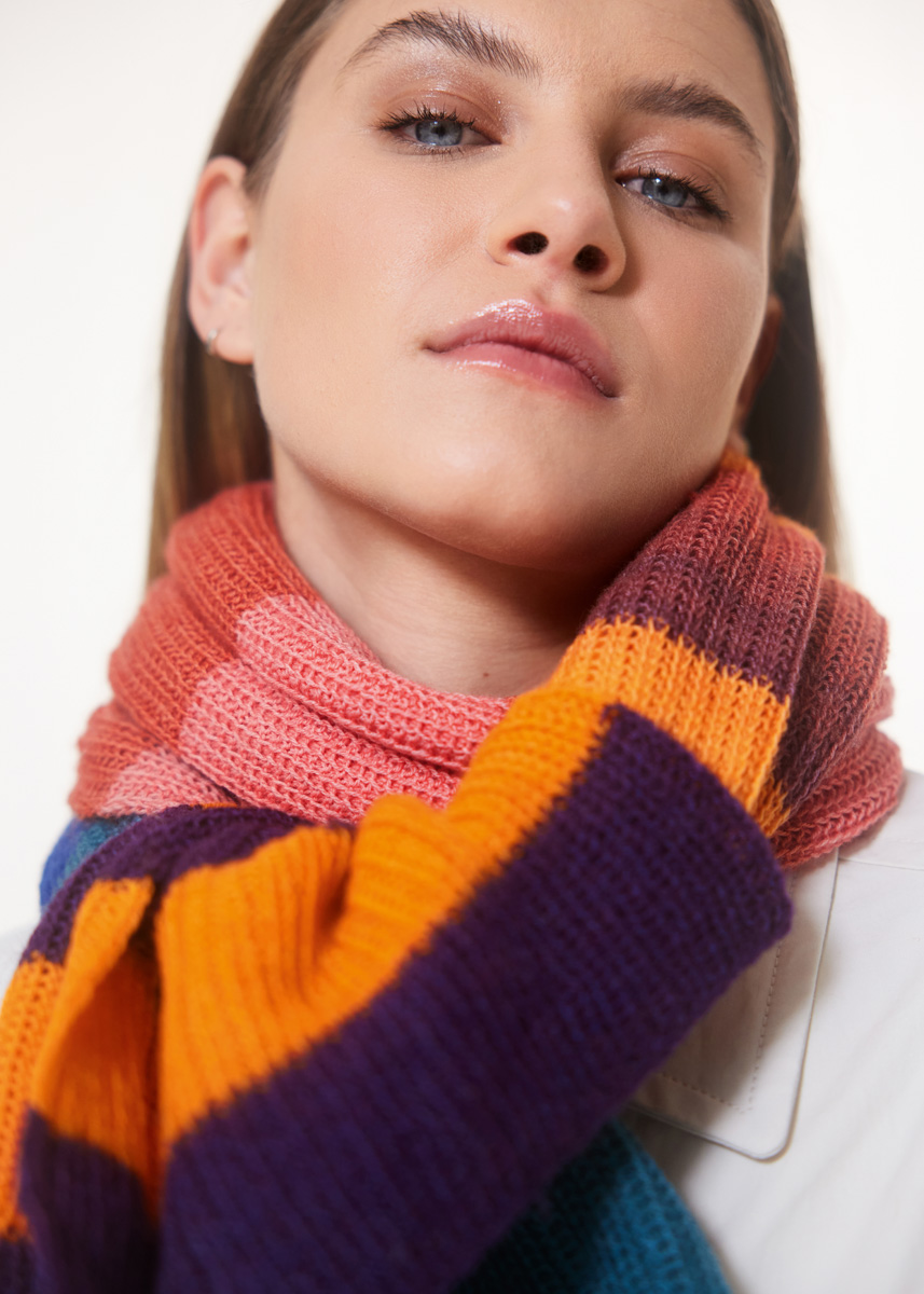 Lana Grossa Merino Lace Aquarell (100% Schurwolle (Merino extrafein), Lauflänge 800 m/100 g), 100 g Orange/ Nelkenrosa/Dunkelblau (Fb. 7) und 100 g Dunkelbraun/ Terrakotta/Dunkelpetrol (Fb. 9); Stricknadeln Nr. 3,5.