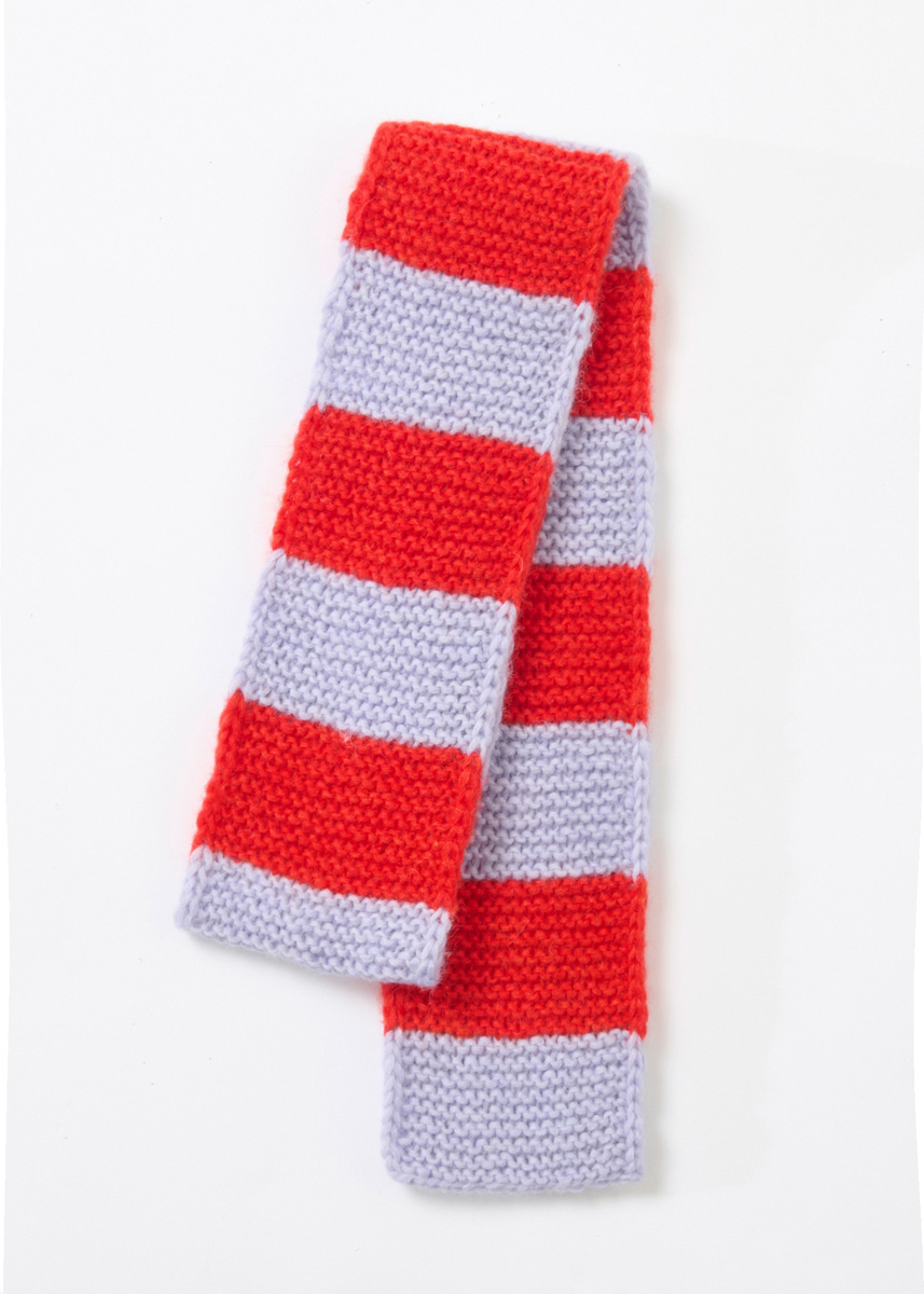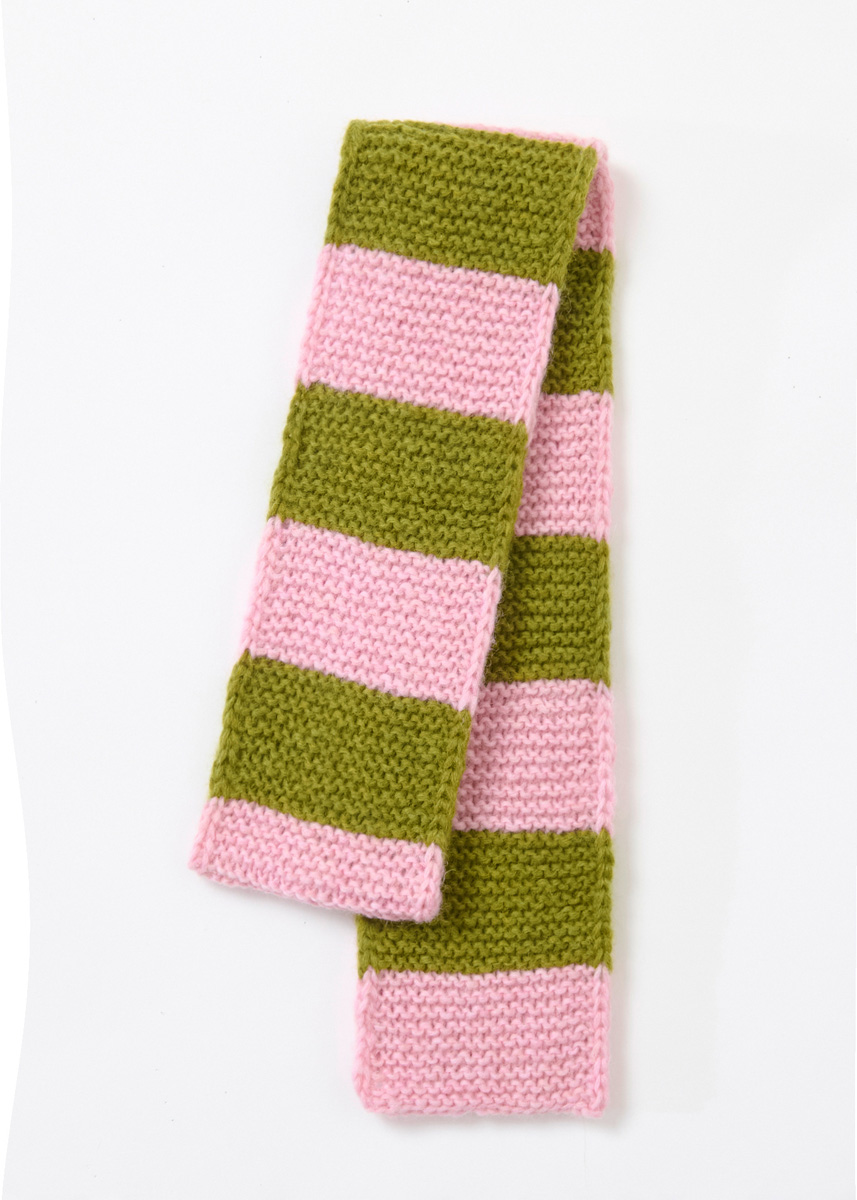 Garn von Lana Grossa, Qualität „Brigitte No. 2“ (47 % Alpaka (Baby), 45 % Baumwolle, 8 % Schurwolle (Merino), Lauflänge 140 m/ 50 g): je 50 g in Zartlila Nr. 78 und Leuchtendrot Nr. 74 oder je 50 g in Rosa Nr. 54 und Avocadogrün Nr. 72. Stricknadeln 5 (wenn Sie locker stricken) oder 6 (wenn Sie fest stricken) – wichtig ist, dass Sie auf die Angaben in der Maschenprobe kommen.