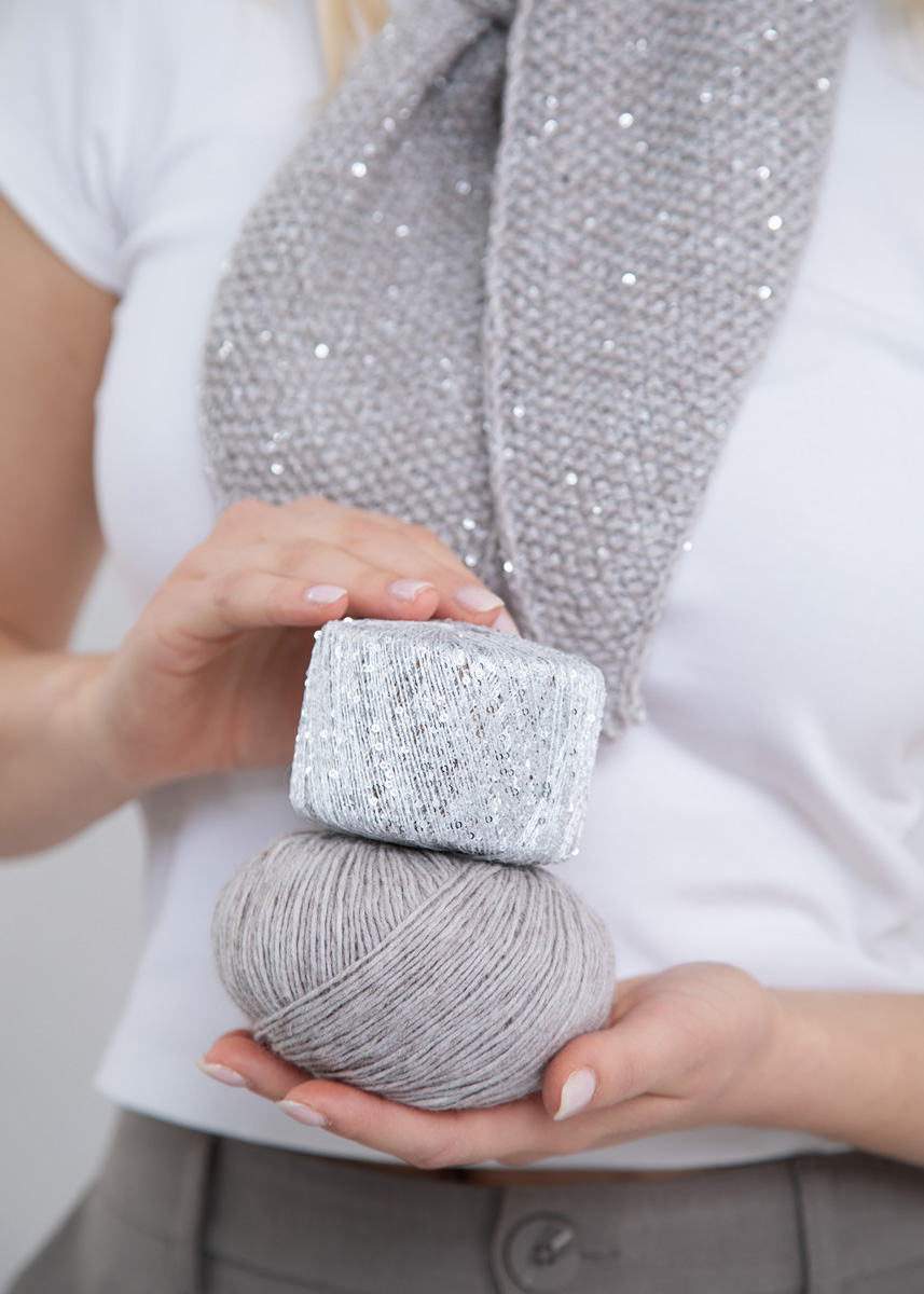 Der Shiny Scarf überzeugt mit einer eleganten Struktur und zeitlosem Design. Gestrickt aus der hochwertigen Garnkombination Ecopuno und Glamour vereint der Schal angenehme Weichheit mit einem eleganten Schimmer. Das feine Perlmuster verleiht dem Schal eine edle, lebendige Oberfläche und sorgt für einen schönen Fall. Dank der zwei verfügbaren Größen lässt sich der Shiny Scarf ganz individuell stylen – ob als zartes Accessoire oder als ausdrucksstarkes Statement-Piece.