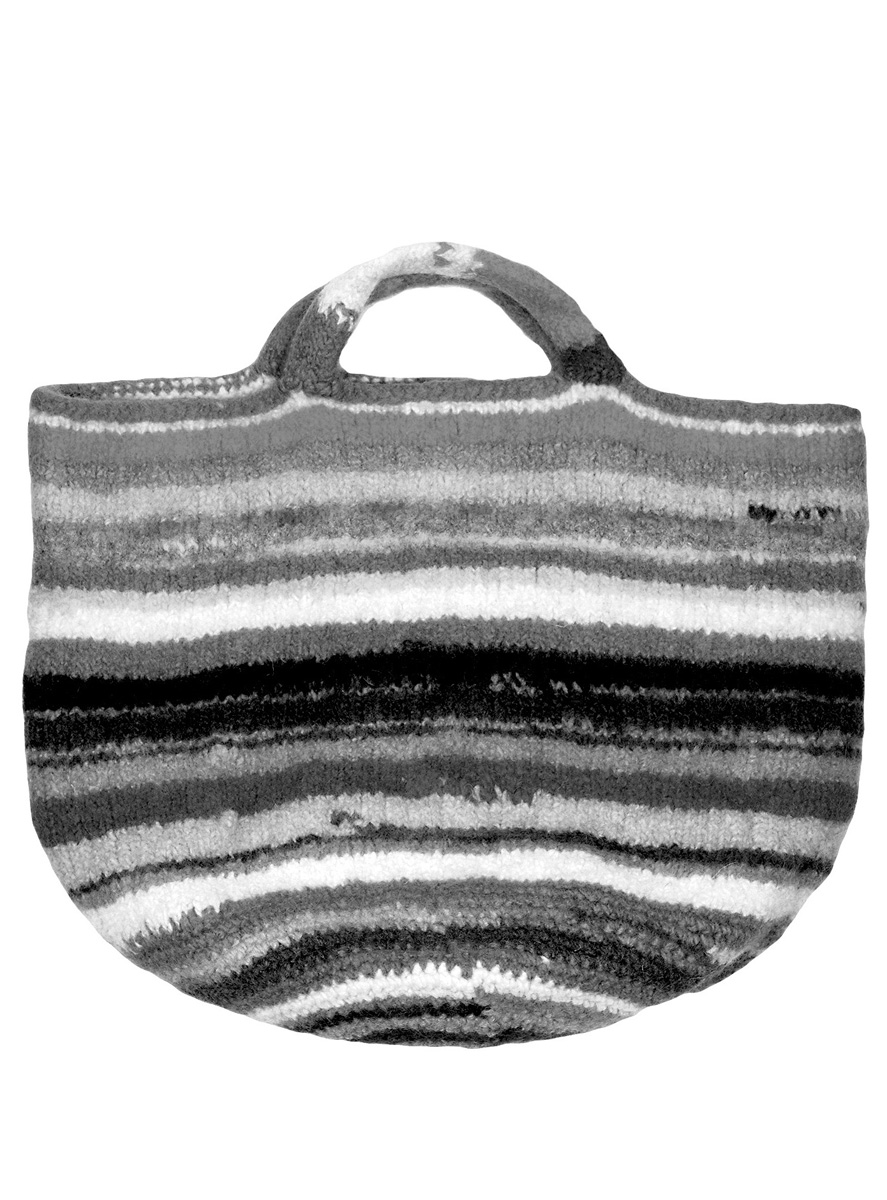 Vor dem Filzen: 58 cm x 144 cm (Höhe x Umfang), Durchmesser Boden 46 cm