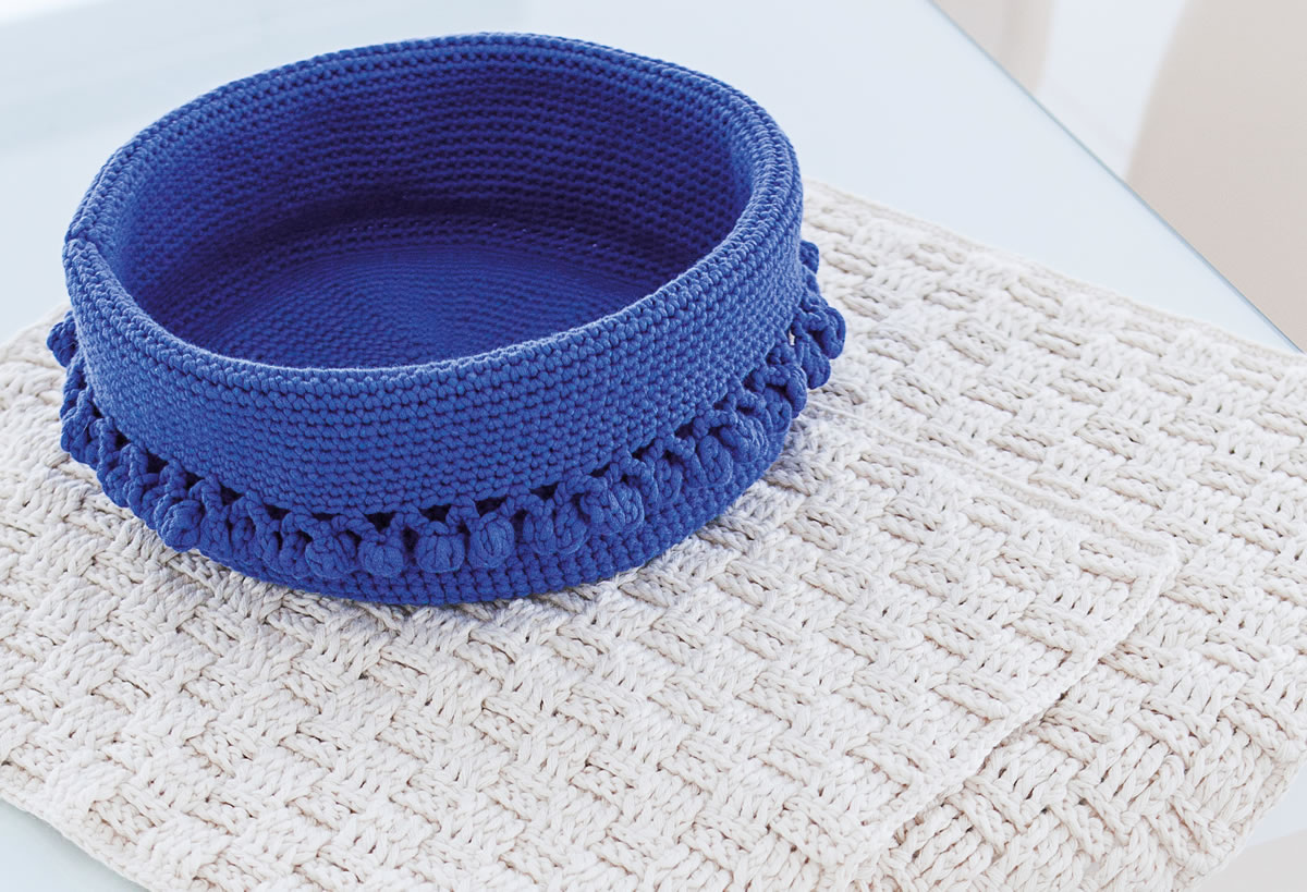 Die Brötchen kommen ins Häkelkörbchen, das Frühstücksgeschirr nimmt Platz auf Schlauchgarn im Schachbrettmuster. Und wer kocht jetzt den Kaffee?