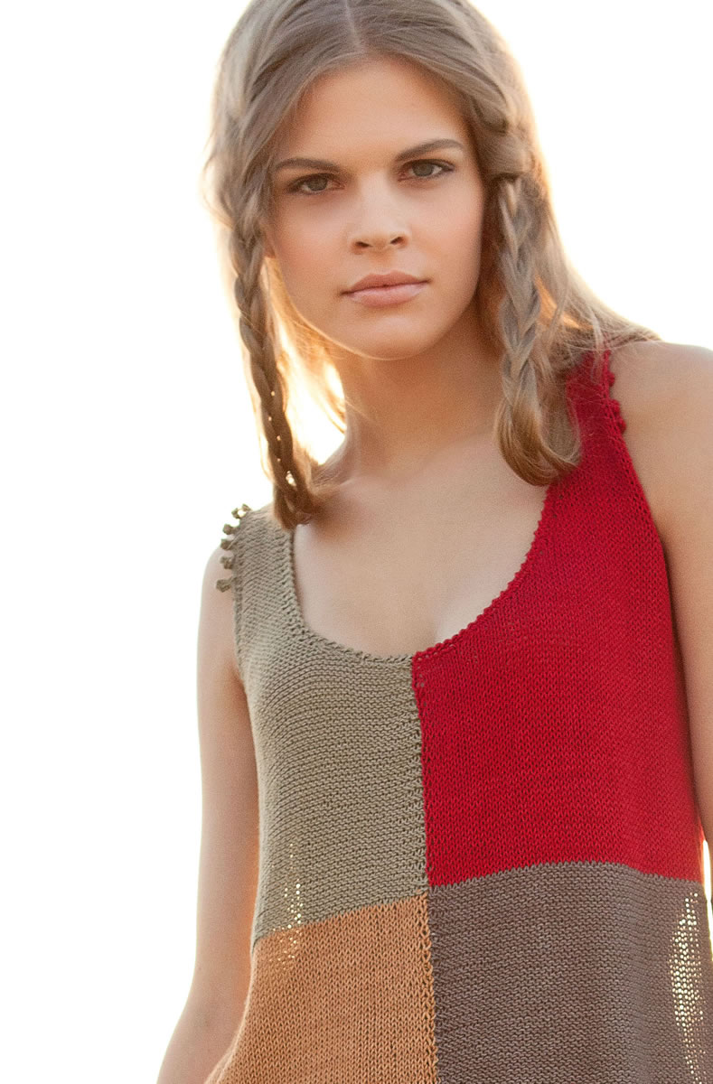 Lana Grossa-Qualität „Solo Lino” (80 % recyceltes Leinen (Viskose), 20 % Leinen, LL = ca. 120 m/50 g): je ca. 100 g Rot (Fb. 11), Cognac (Fb. 10), Schilf (Fb. 8) und Nugat (Fb. 9); Stricknadeln Nr. 3,5 und 4, 1 Wollhäkelnadel Nr. 3,5.